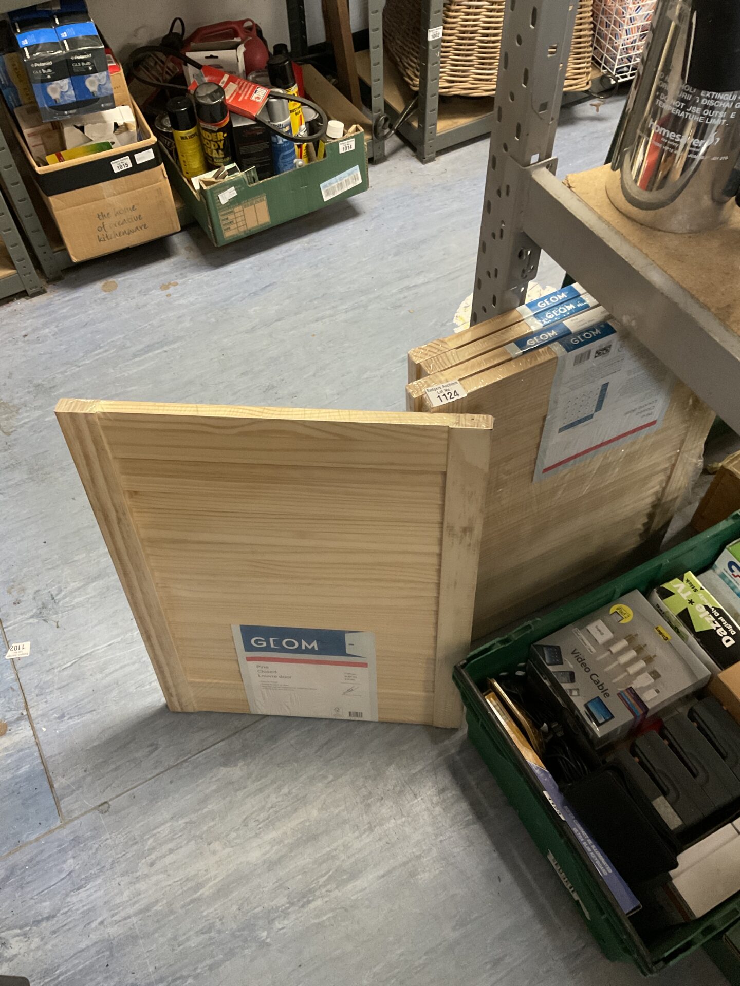 This lot comprises five new Geom pine closed louvre doors. Measuring 610mm in height, 457mm in width, and 21mm in depth, these doors offer a classic and versatile solution for interior spaces. The closed louvre design provides both privacy and airflow, making them suitable for various applications such as wardrobes, cabinets, or room dividers.