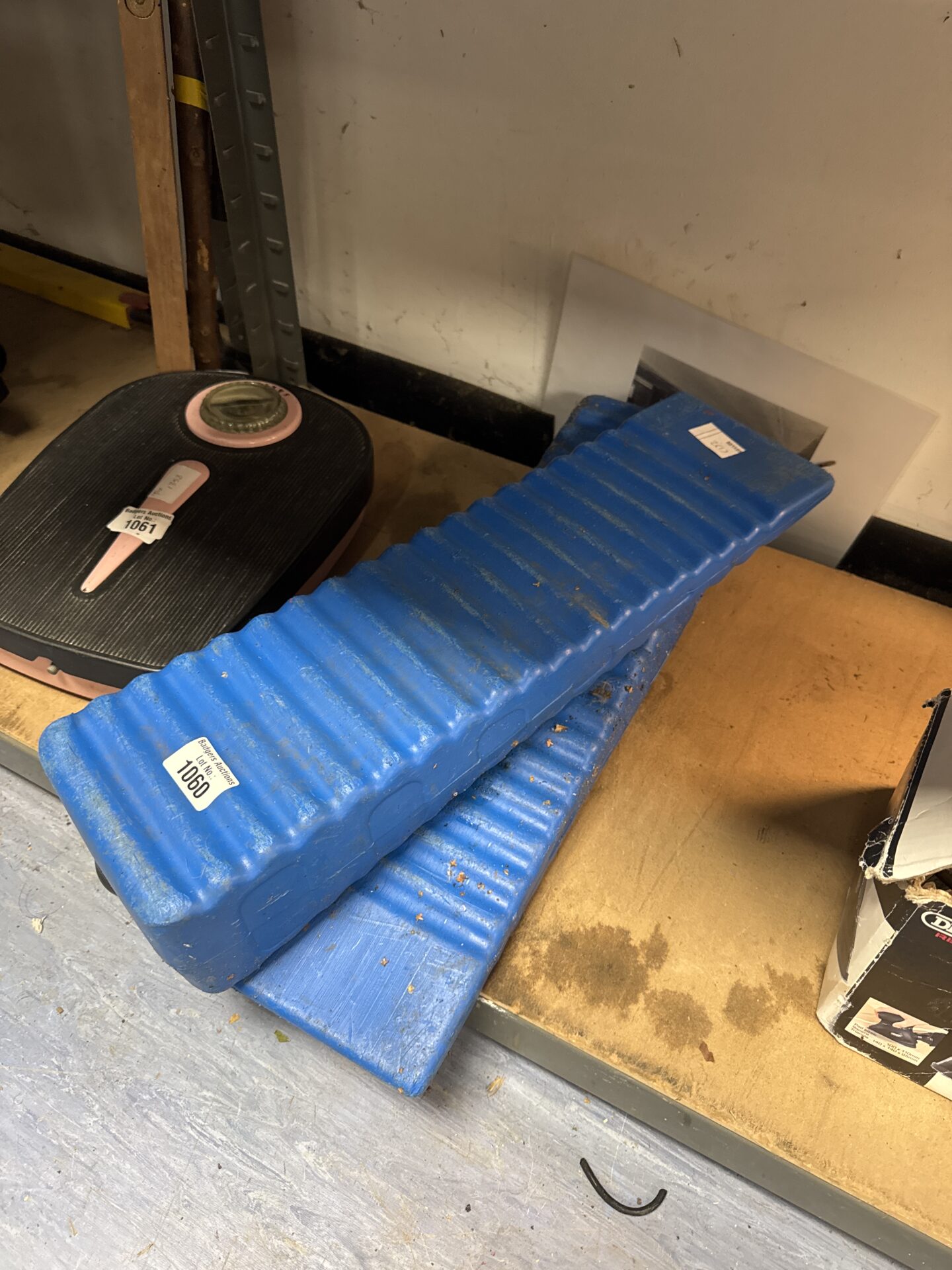 This lot comprises a pair of small, weighted plastic access ramps. These ramps appear to be designed to provide a gentle incline for small objects or potentially for accessibility purposes. The weighted design suggests they are intended to remain stable during use, preventing sliding or movement.