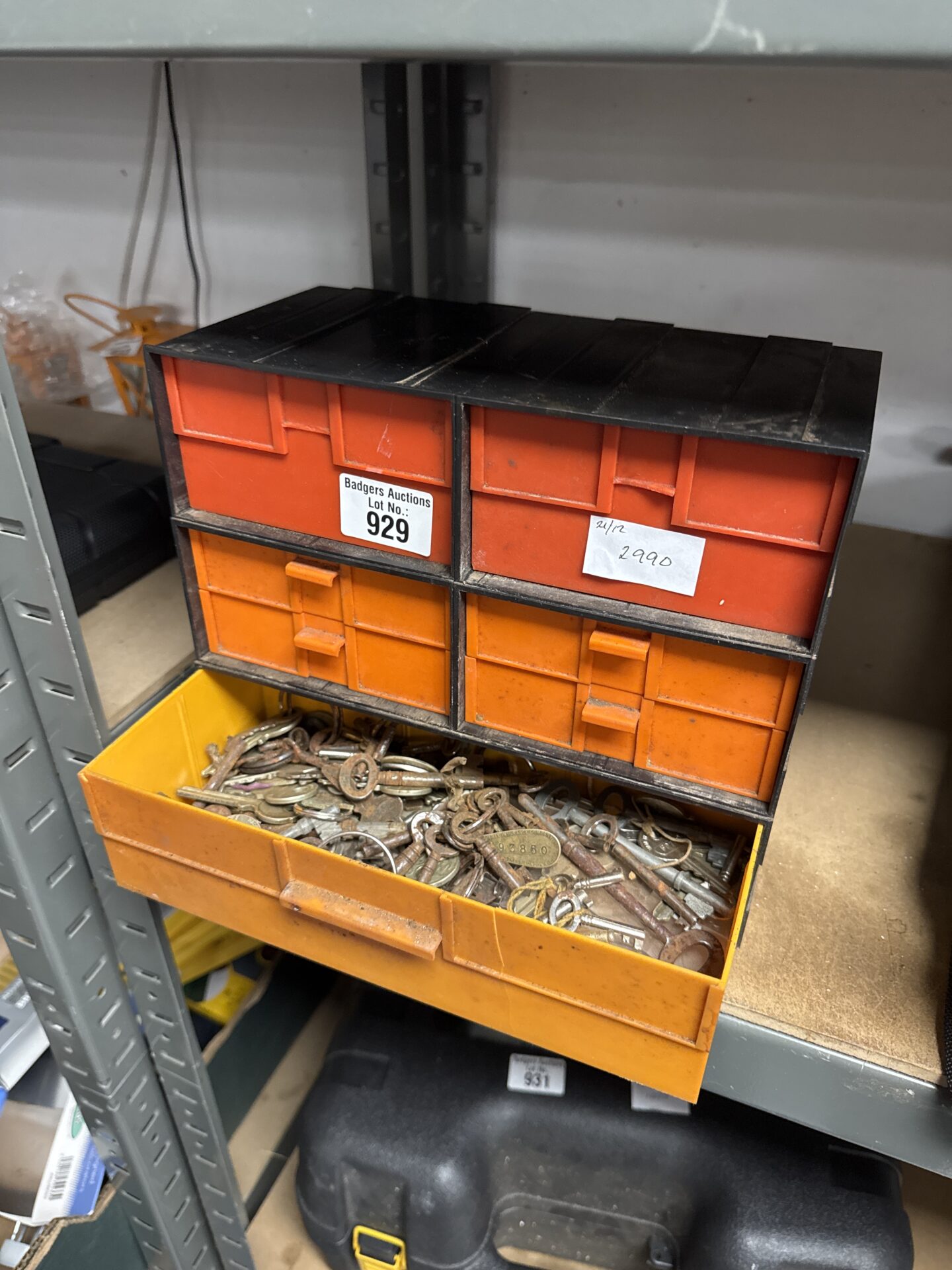 This is a plastic organiser unit, featuring multiple drawers for storage. The unit appears to be constructed from a durable plastic material, designed for holding small parts, tools, or workshop items. It offers a tiered storage solution, allowing for organisation and easy access to contents.