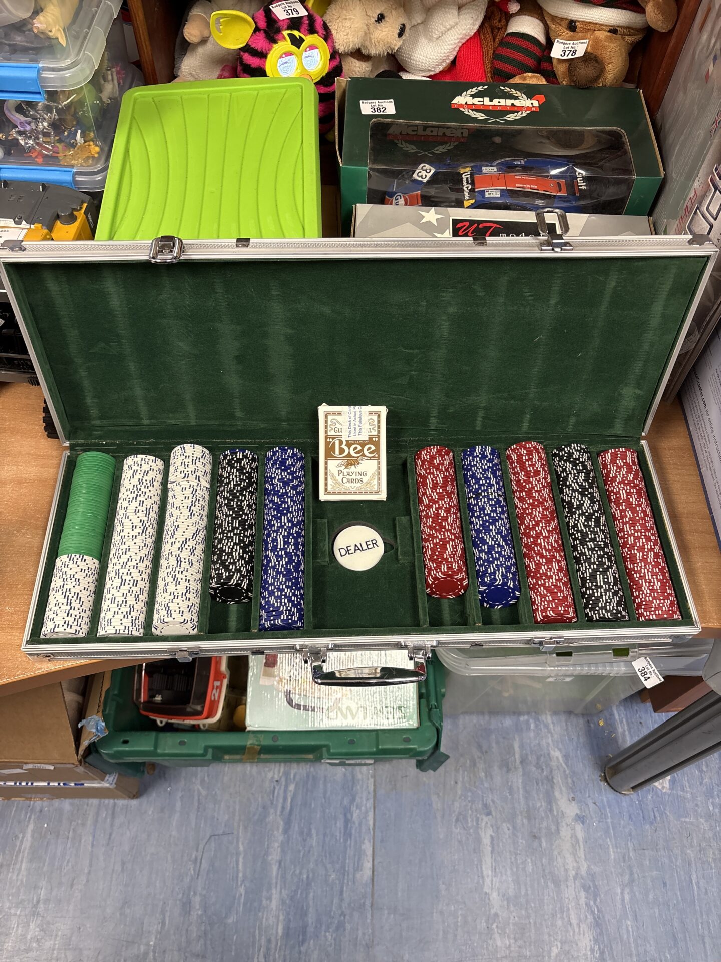 The set appears to be in used condition, with some signs of wear to the case and chips. Despite this, it remains a desirable item for collectors of casino memorabilia or those interested in vintage gaming equipment. The aluminium case adds to its appeal, offering both protection and a retro aesthetic.