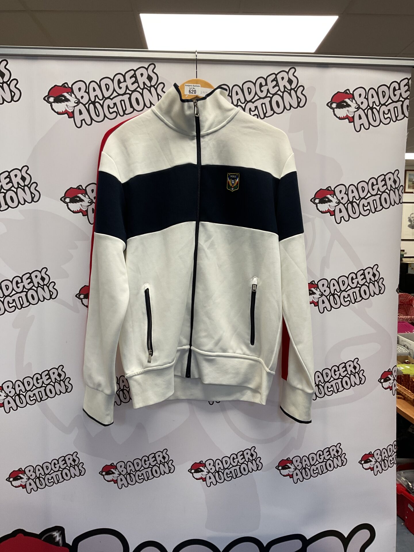 This Polo Ralph Lauren track jacket is in good vintage condition, showing signs of wear consistent with its age. It’s a highly sought-after piece for collectors of vintage sportswear and Polo Ralph Lauren enthusiasts. The jacket’s retro styling and quality construction make it a standout piece for both casual wear and collector displays.