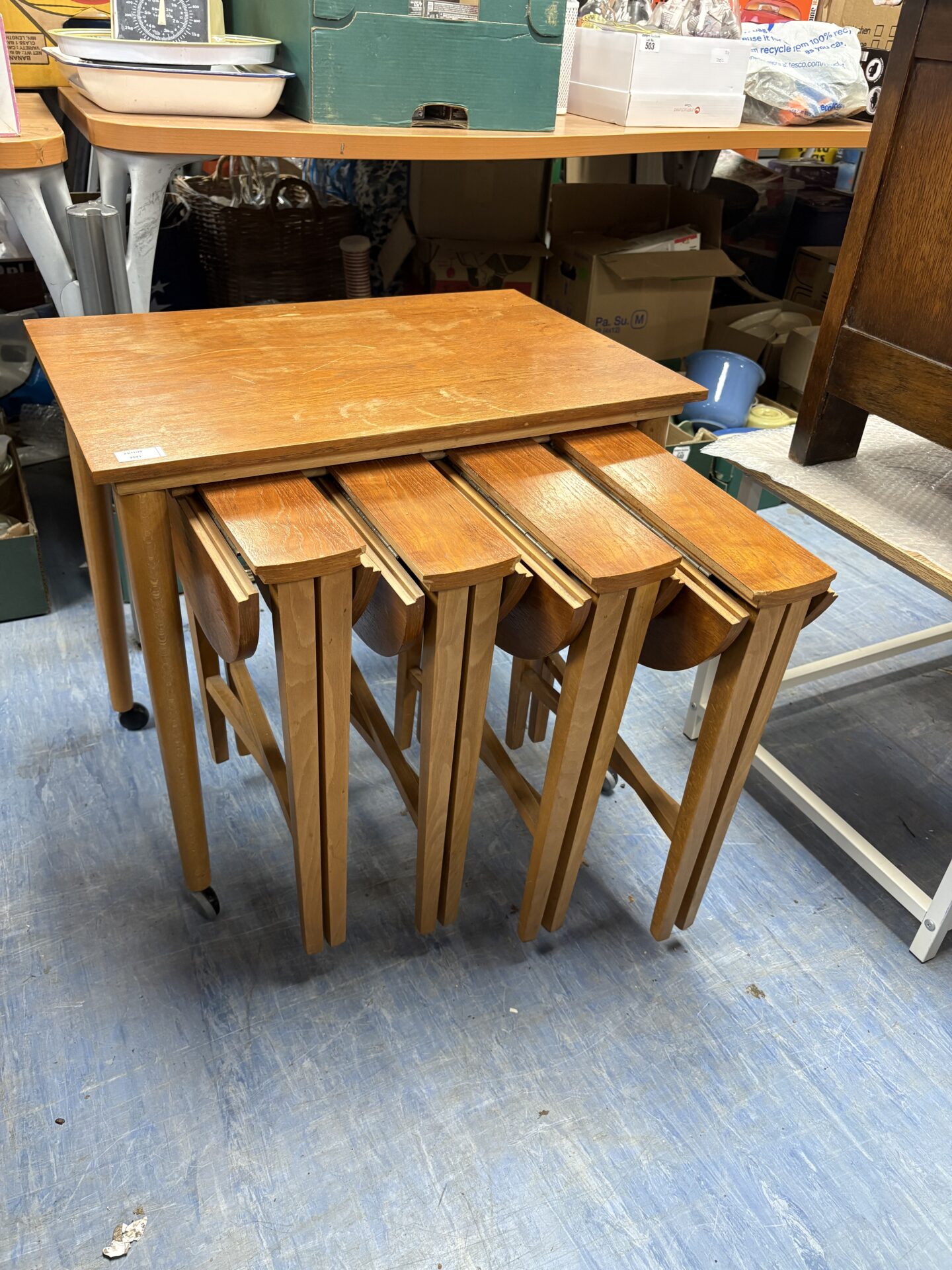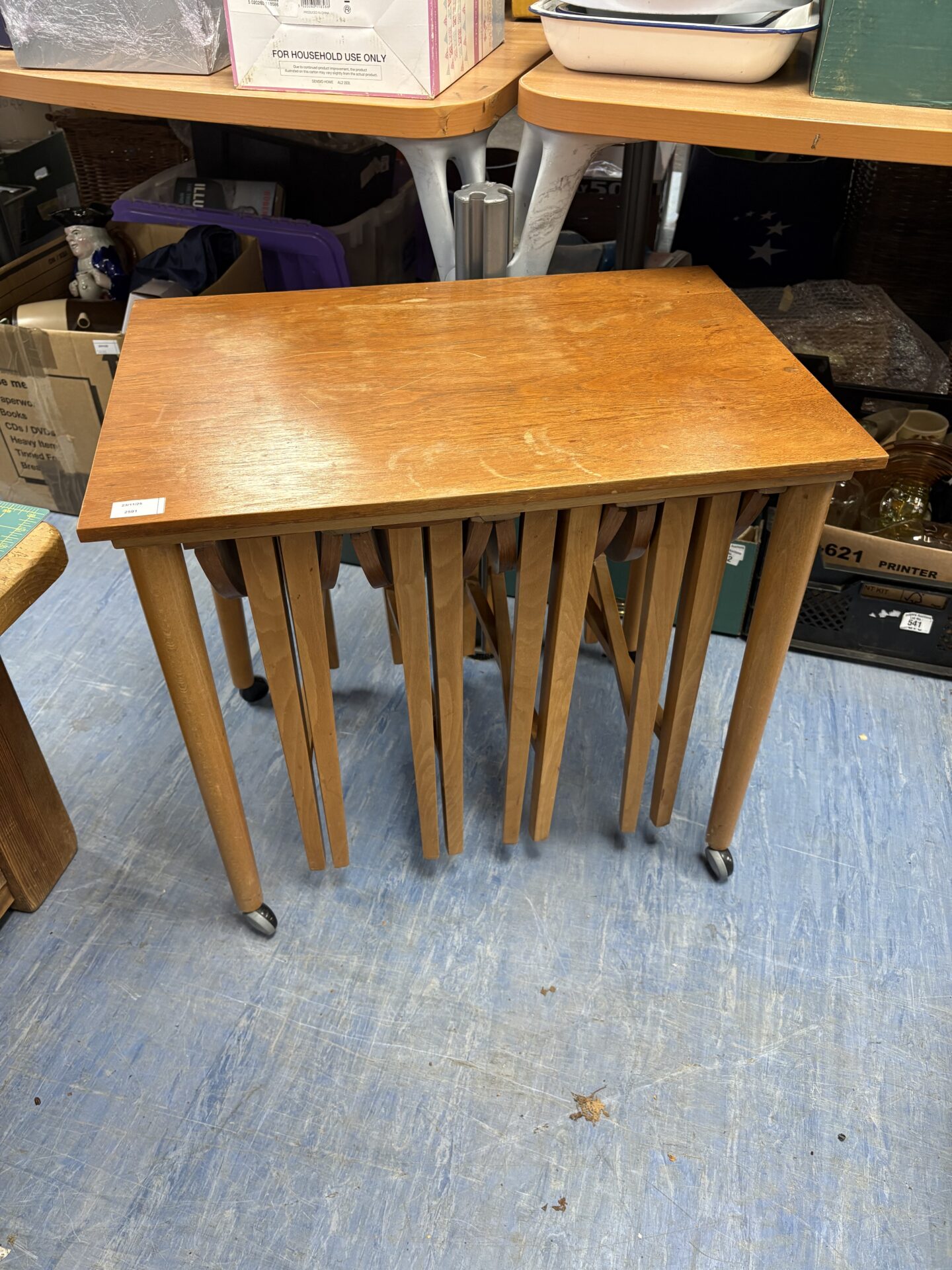 463 Mid Century Poul Hundevad Teak Trolley Drop Leaf Nesting Table Set