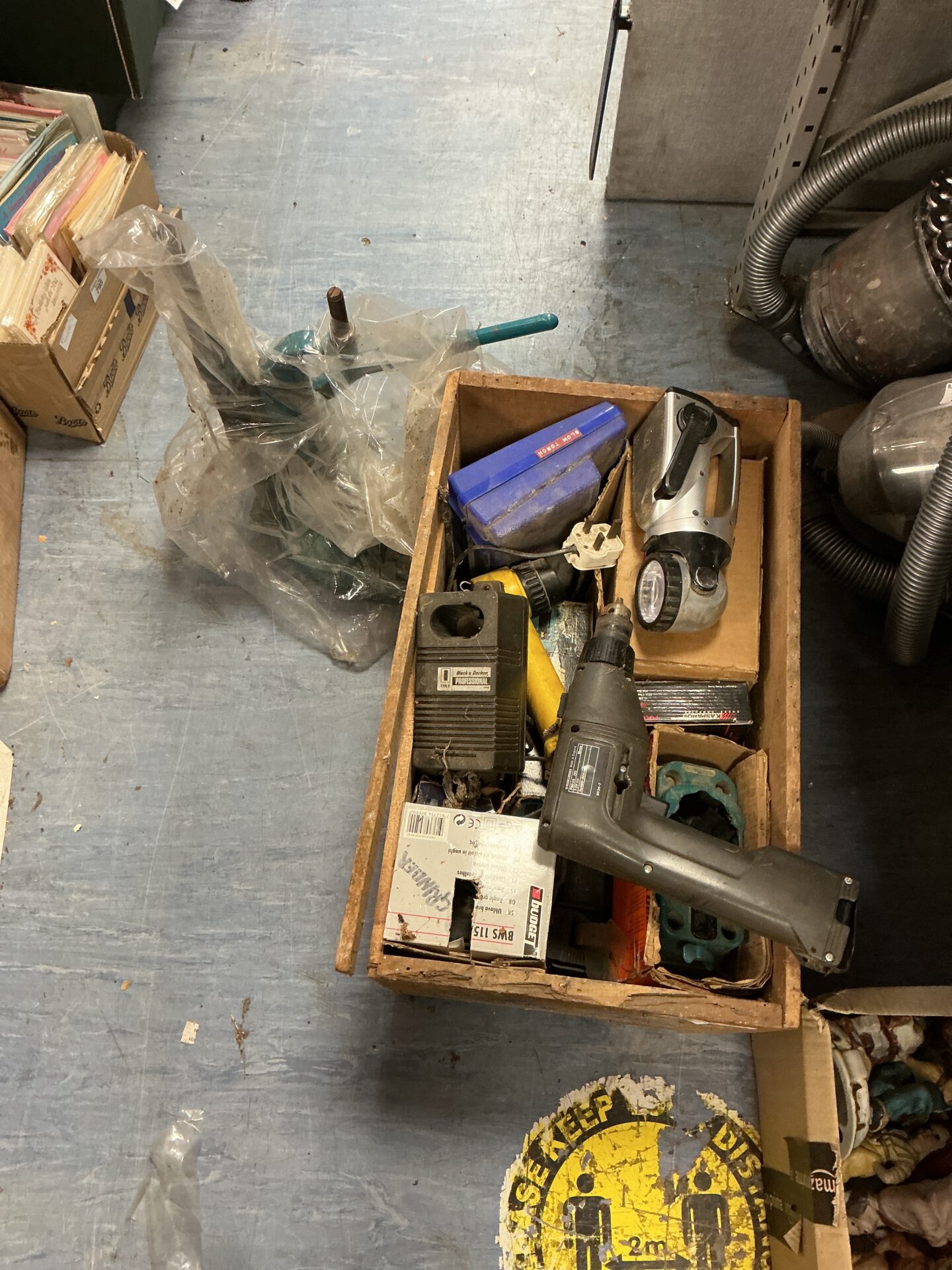 This lot contains a collection of various power tools, including what appears to be a drill and a sander. The tools are of varying makes and models, suggesting they have been accumulated over time. The assortment offers a range of functionality for DIY projects and general home maintenance.