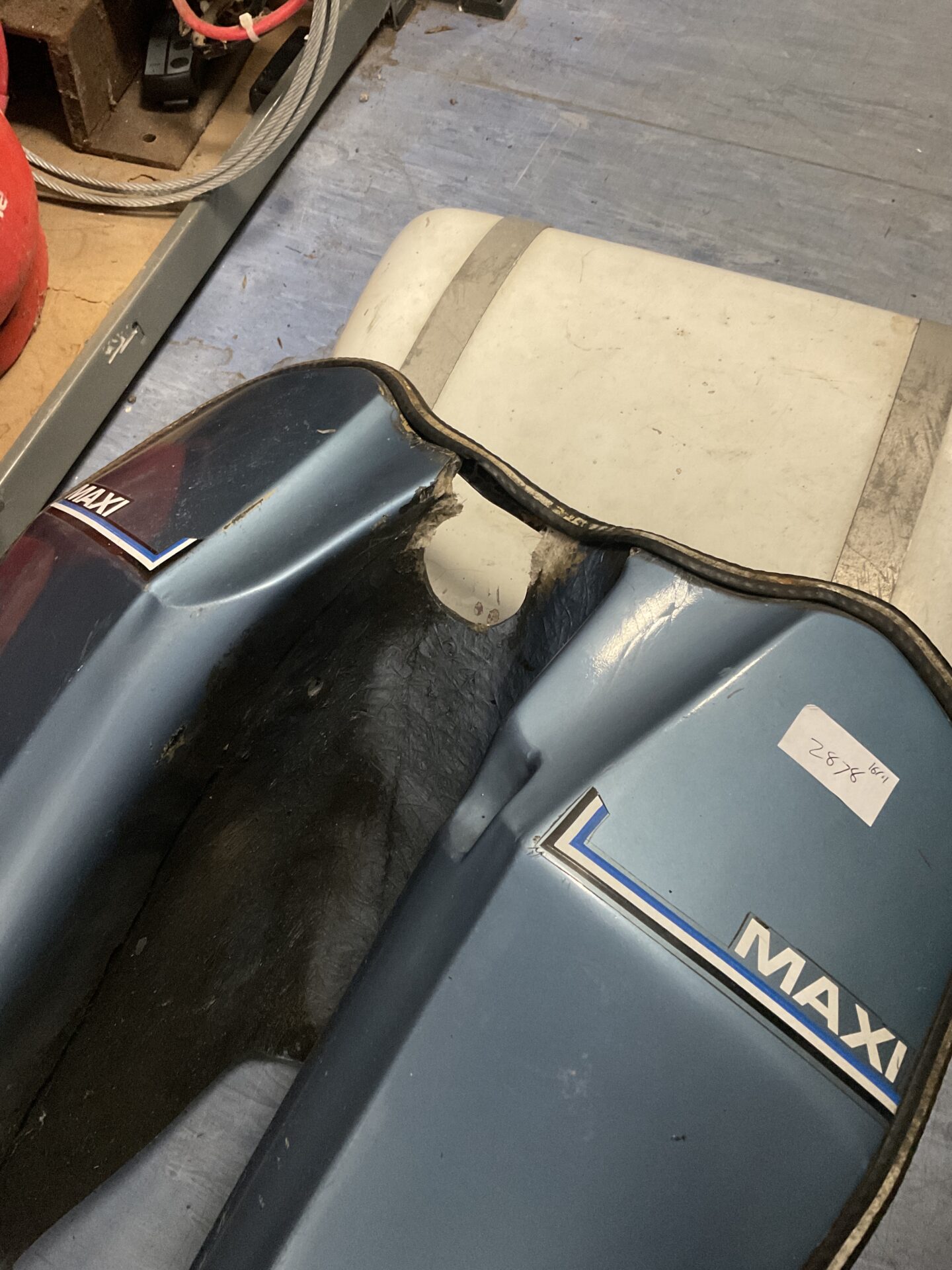 This Puch Maxi valance exhibits signs of wear consistent with its age and use. The top surface is damaged, requiring repair or restoration. Despite this, it remains a desirable item for Puch Maxi enthusiasts and restorers, offering a rare opportunity to acquire original bodywork for this classic scooter.