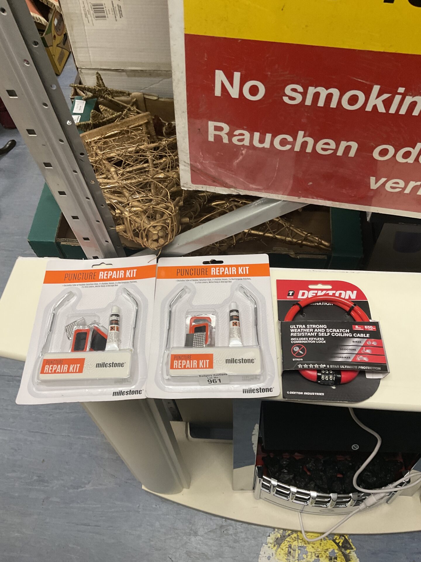 961 Two Milestone Puncture Repair Kits & A Dekton Combination Lock Chain