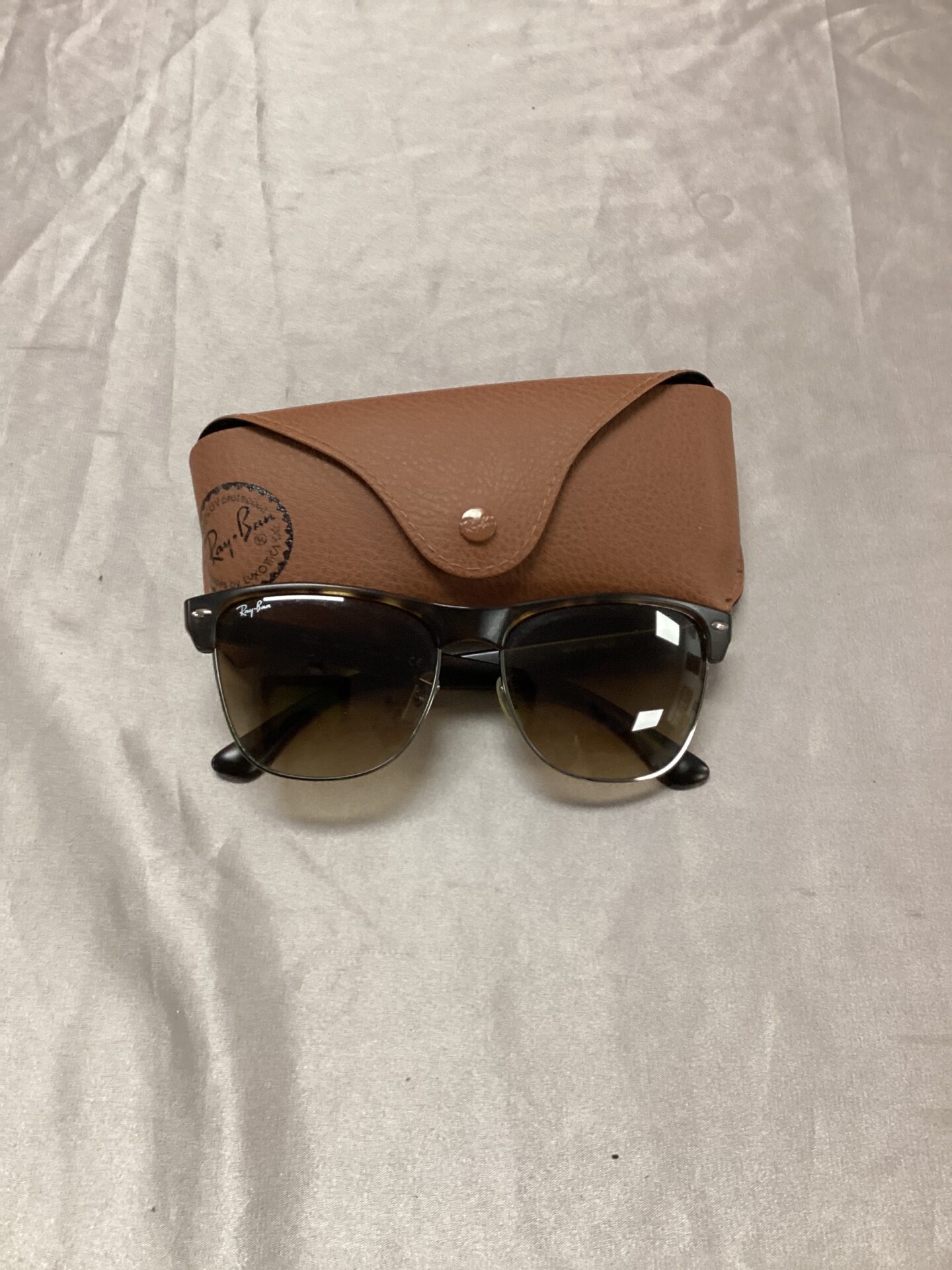 A pair of genuine Ray-Ban sunglasses, offering classic style and sun protection. These sunglasses feature a sleek frame and dark lenses, embodying the brand’s commitment to quality. A desirable piece for collectors and enthusiasts of vintage eyewear.