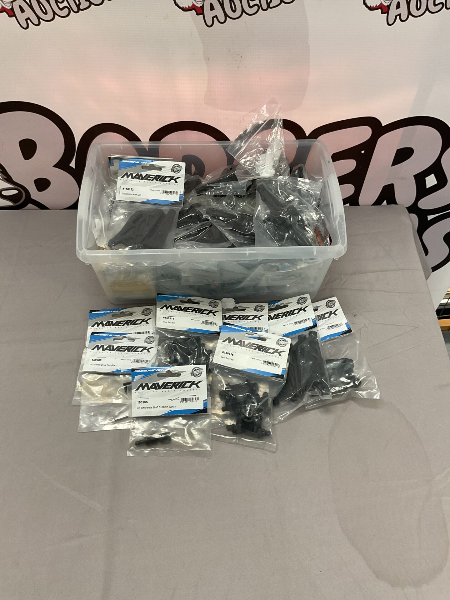 The condition of the parts appears to be new or lightly used, still within their original packaging. This makes them particularly desirable for collectors or those seeking genuine replacement parts for their RC cars. The inclusion of Maverick branded items adds value, as this brand is well-known within the RC community.
