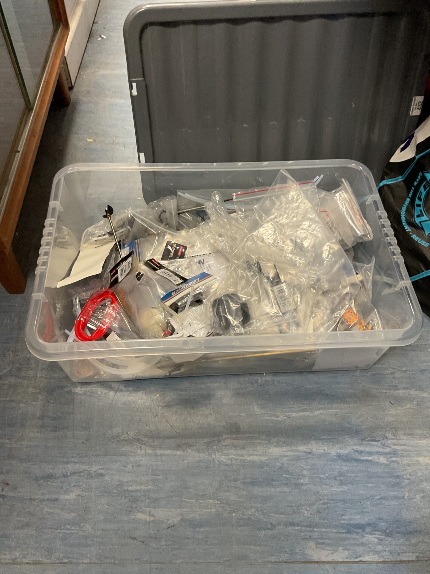 This is a large lot of assorted parts and accessories for radio-controlled (RC) models. The collection appears to contain a variety of components suitable for cars, airplanes, or other RC vehicles. It’s a comprehensive collection for hobbyists, builders, or those needing replacement parts for their existing RC models.