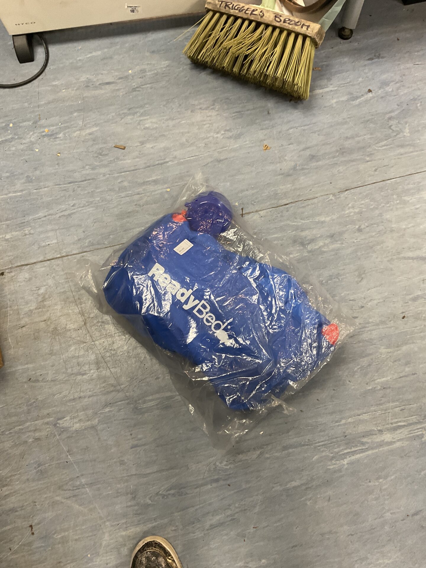 This is a Readybed air bed, designed for easy inflation and deflation, making it ideal for travel, camping, or accommodating guests. The bed features a built-in pump for quick setup and packs down compactly for storage. It’s a convenient and portable solution for providing a comfortable sleeping surface wherever it’s needed.