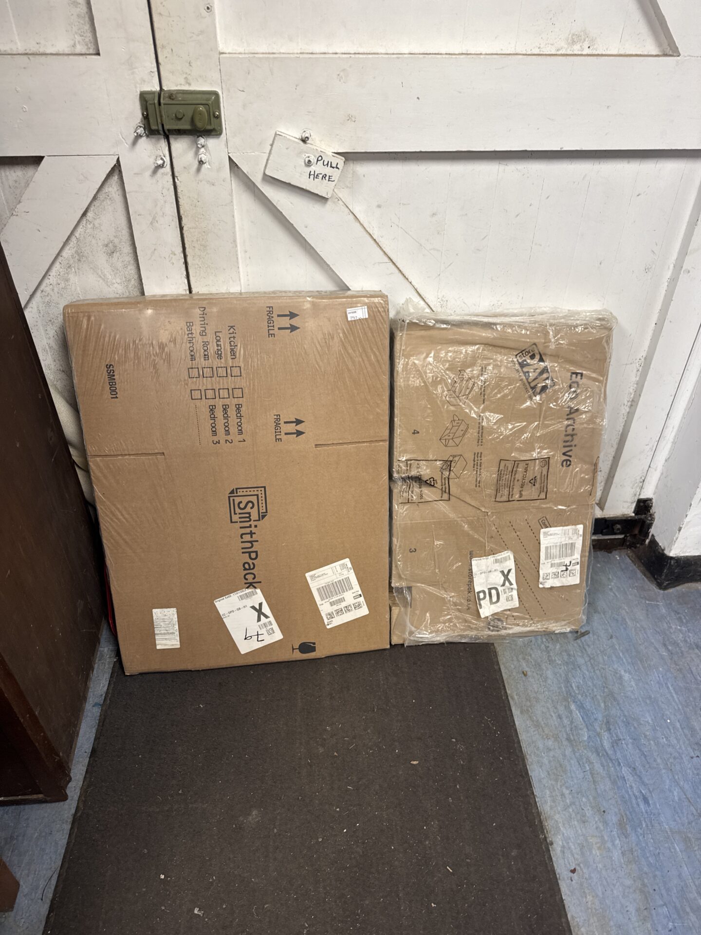 This lot comprises two packs of cardboard removals boxes, designed for house or office relocation. These boxes offer a convenient solution for packing and transporting belongings safely. The sturdy construction provides reliable support during transit, making them ideal for a variety of items.