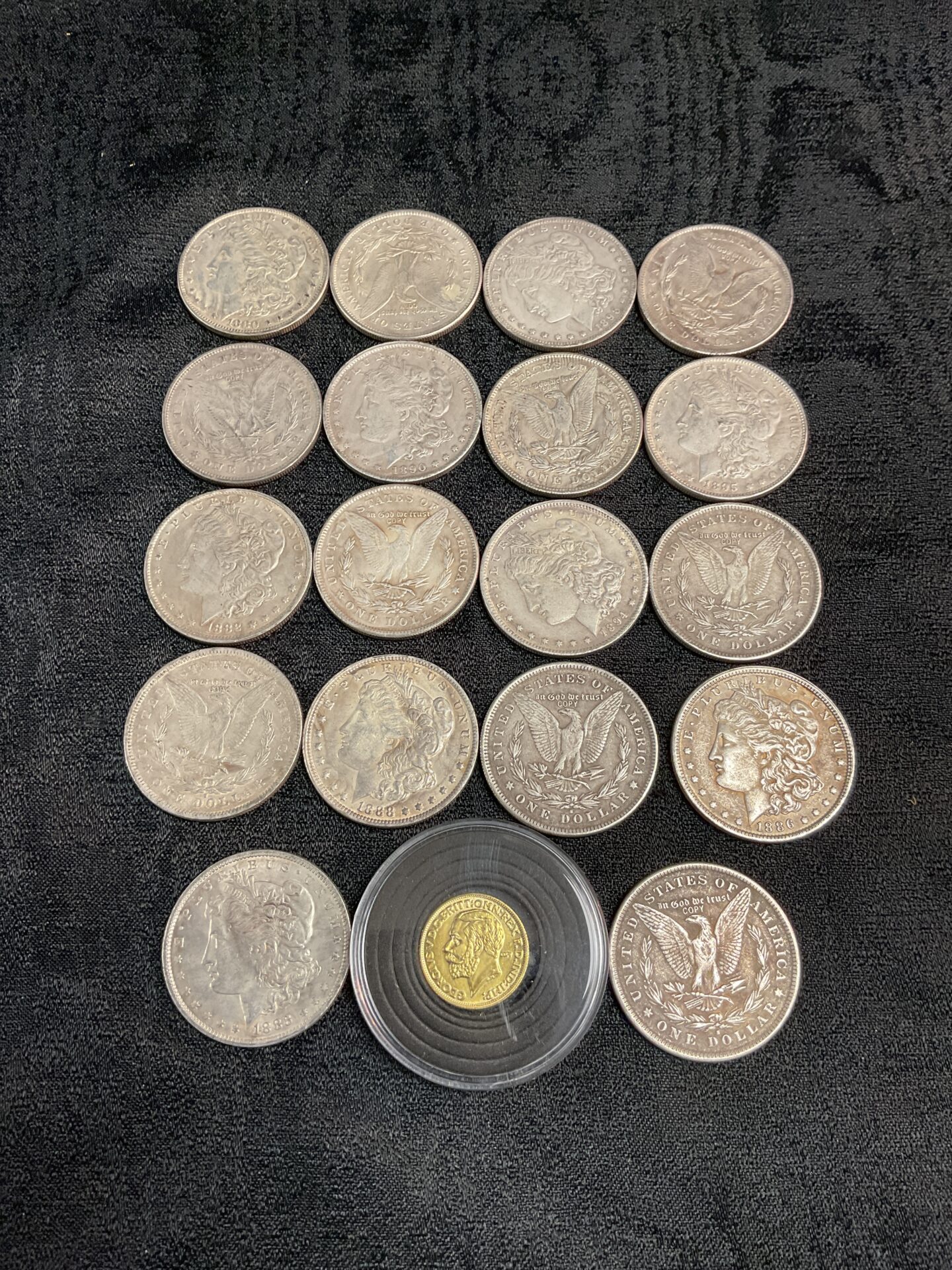 824 Eighteen Reproduction Morgan Dollar Coins And Reproduction Sovreign