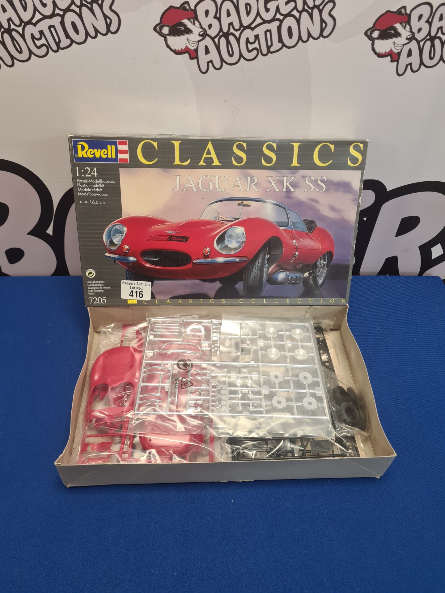 This is a classic 1:24 scale plastic model kit of the iconic Jaguar XK SS. A beautifully designed sports car from the 1950s, the XK SS is renowned for its sleek lines and racing pedigree. This Revell kit allows enthusiasts to recreate a miniature version of this legendary vehicle, complete with detailed interior and exterior features.
