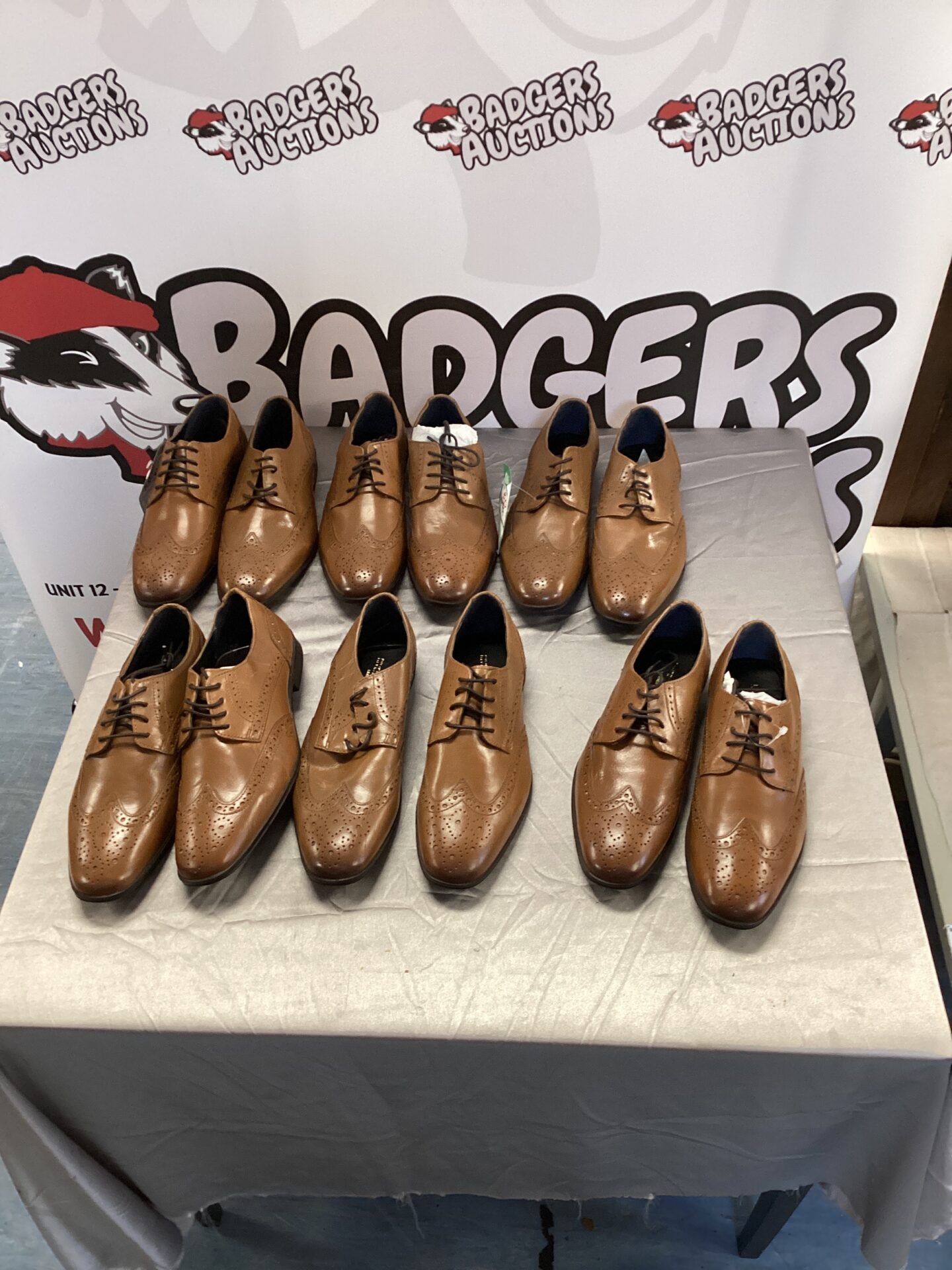 These are a pair of River Island mens brown leather shoes, size 7. They feature a classic formal style, suitable for various occasions. The shoes appear to be constructed from genuine leather, offering both durability and a refined aesthetic.