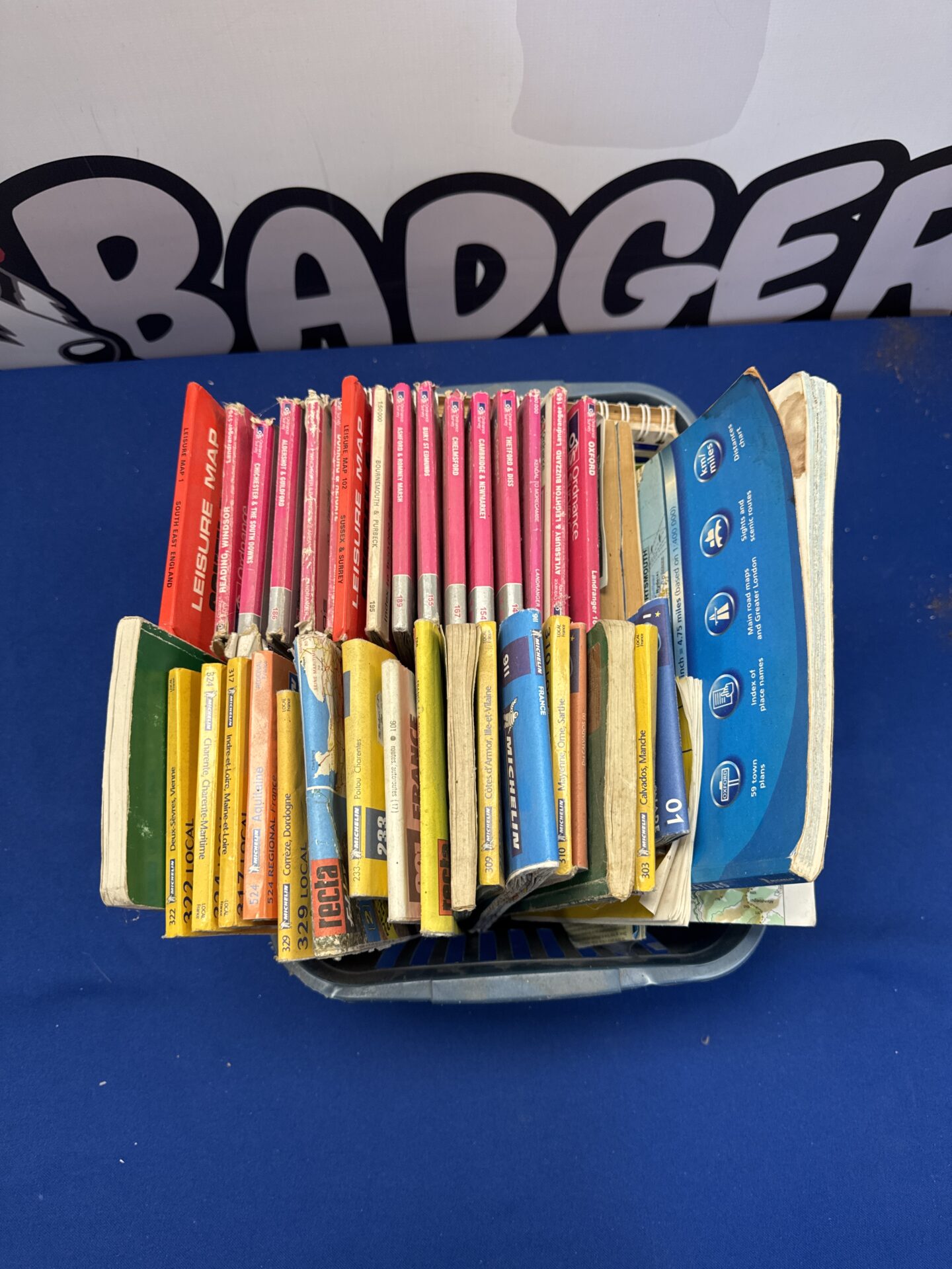 This lot comprises a collection of assorted road maps, primarily focusing on British and French regions. The maps appear to be from various eras, with some potentially dating back several decades. The collection includes Ordnance Survey maps, known for their detailed cartography and accuracy, alongside French road maps offering coverage of different areas.