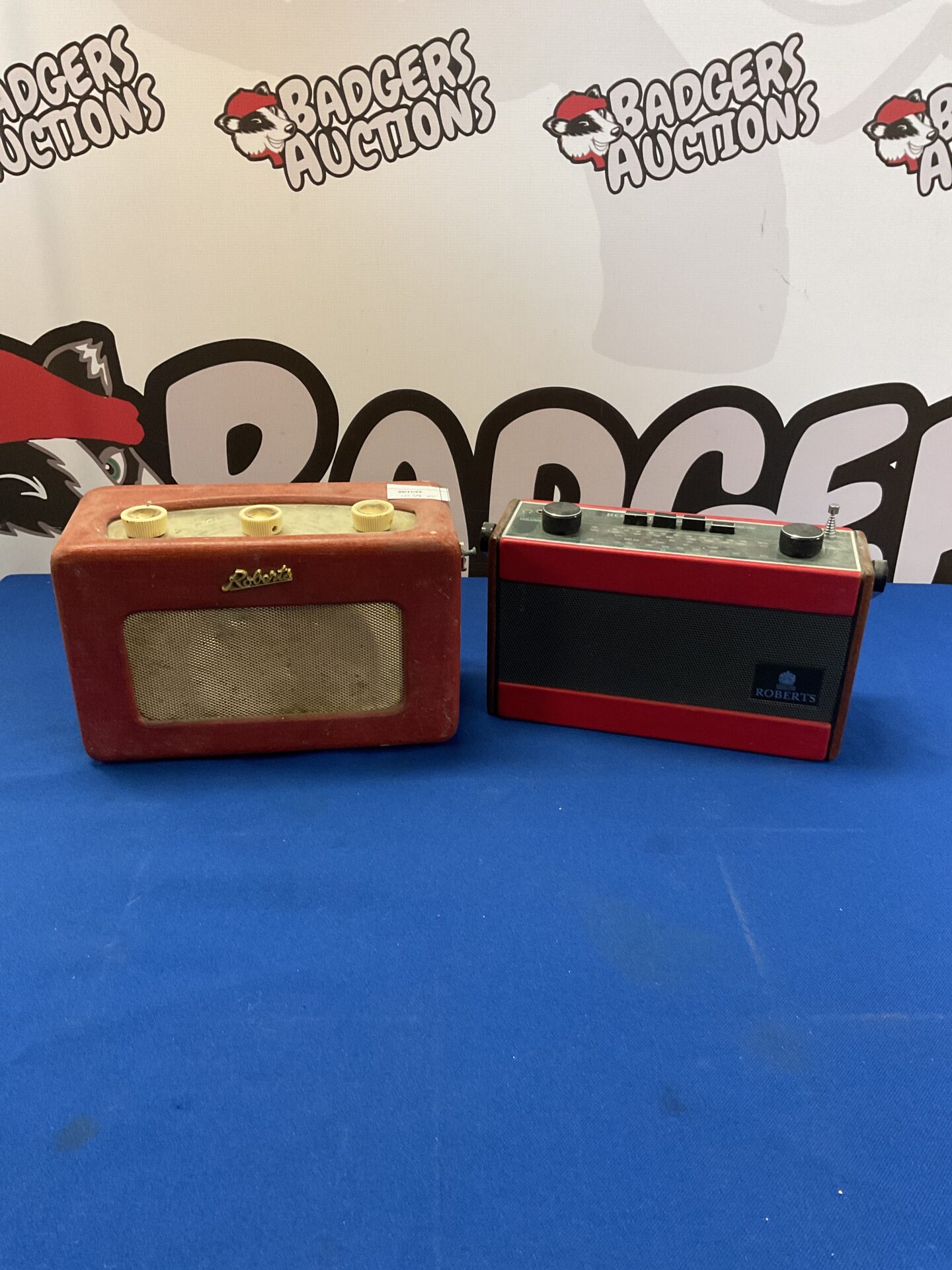 This is a Roberts R200 transistor radio, a classic example of mid-century British design. The radio features a distinctive red casing and a prominent tuning dial. It was a popular model known for its portability and good reception, making it a favourite amongst enthusiasts and those seeking a reliable portable radio.