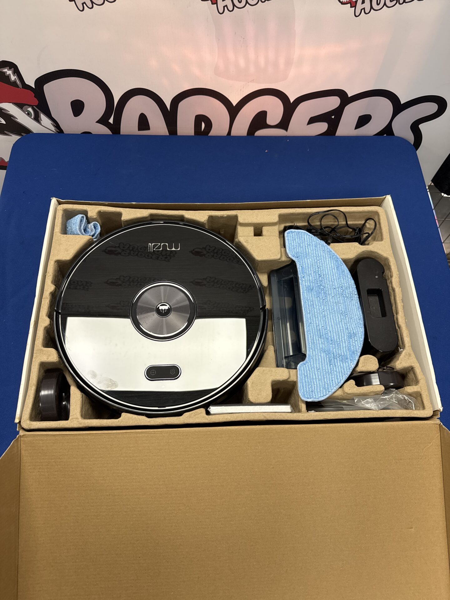 This is a Muzili robot vacuum cleaner, model G9070. Designed for automated floor cleaning, this appliance offers a convenient solution for maintaining a tidy home. The sleek, circular design suggests a modern aesthetic, and it is intended to navigate autonomously around obstacles to clean floors efficiently.