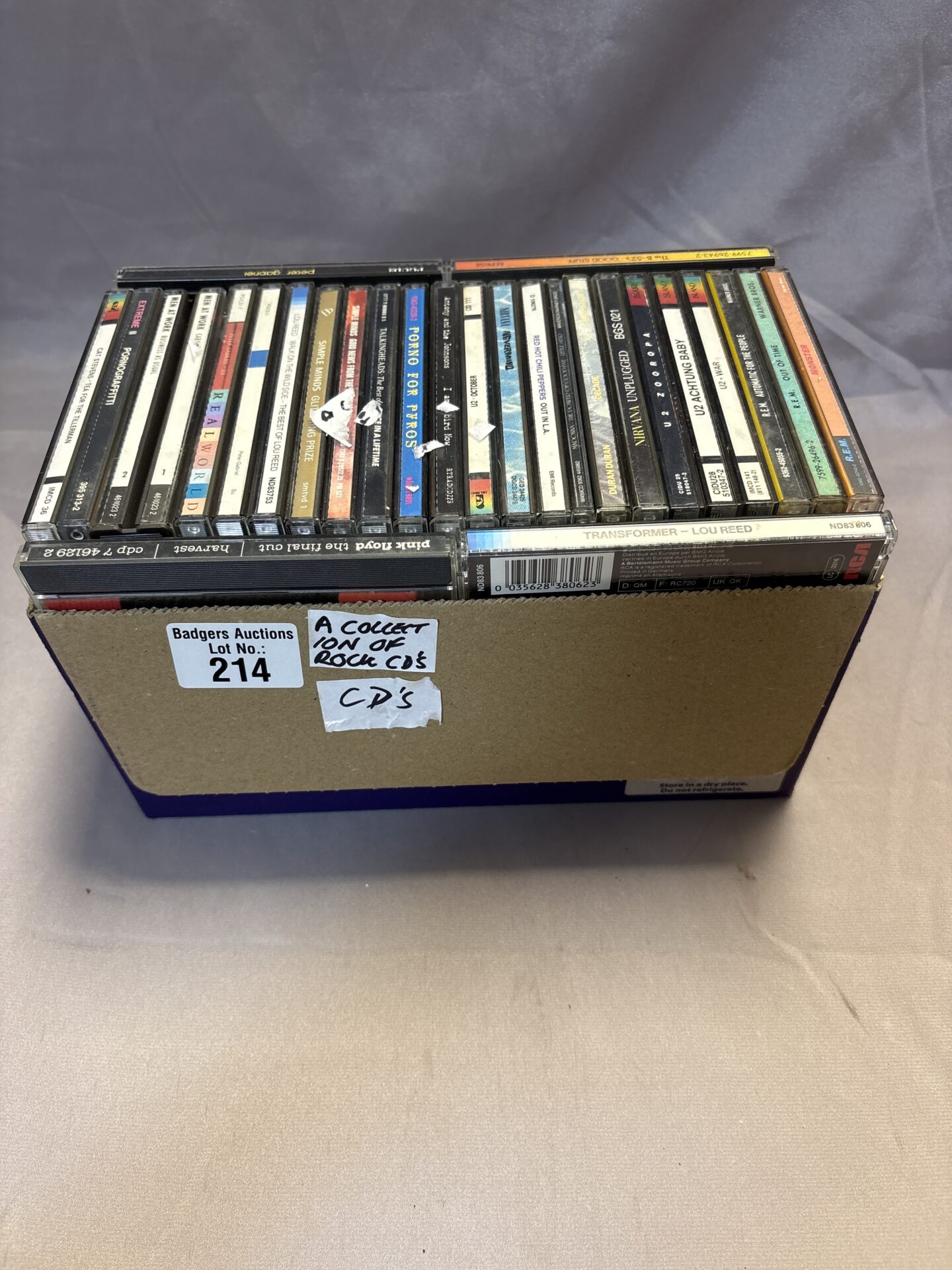 This lot comprises a collection of rock music CDs. The collection appears to span various artists and genres within the rock music spectrum. The CDs are housed in standard jewel cases, offering a glimpse into the era of physical music media.