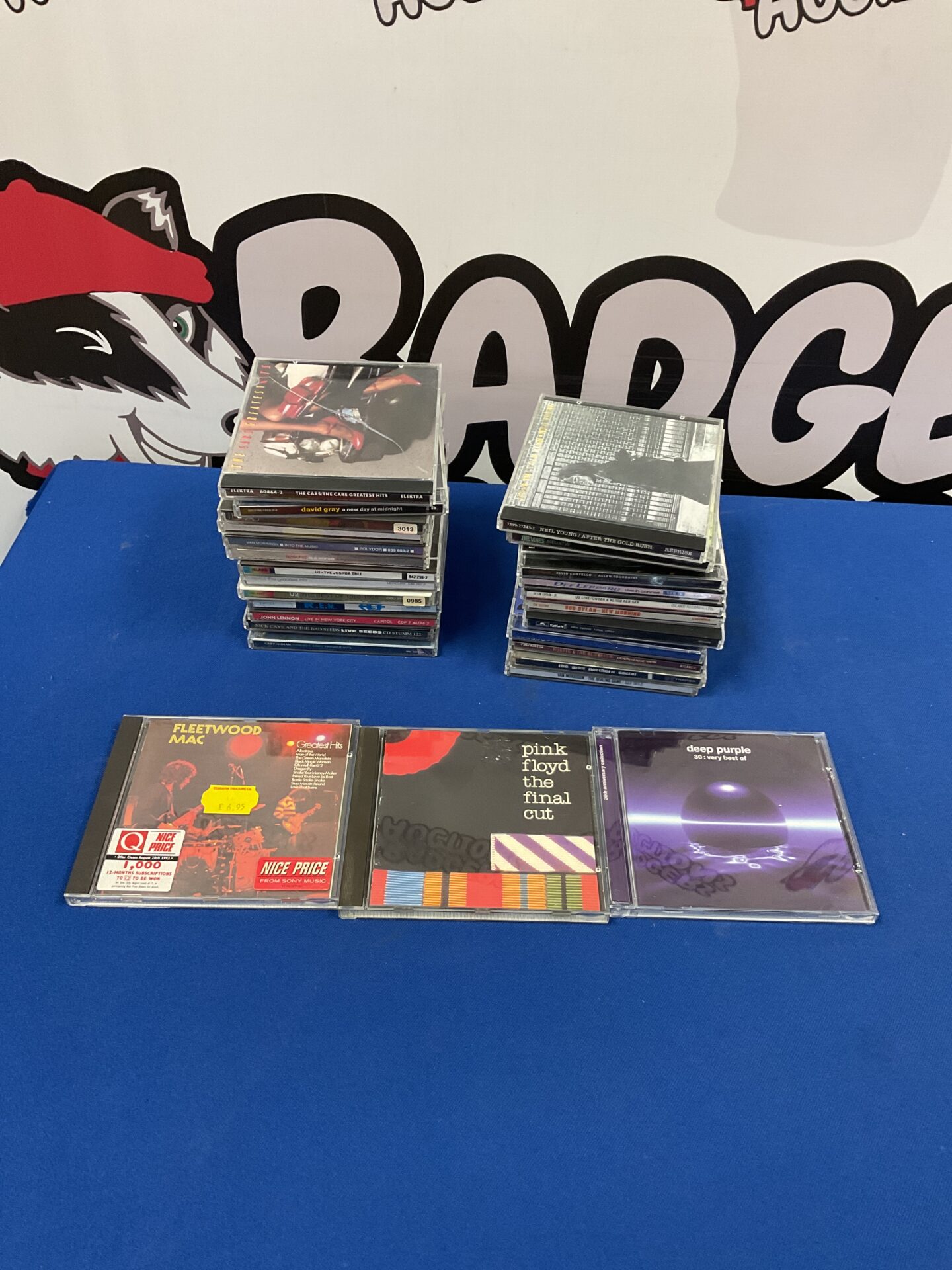 This is a diverse collection of rock CDs featuring iconic artists such as Deep Purple, Pink Floyd, and Fleetwood Mac, amongst others. The lot represents a great selection of classic rock albums, perfect for music enthusiasts and collectors alike. This collection offers a wide range of musical styles within the rock genre, providing hours of listening pleasure.