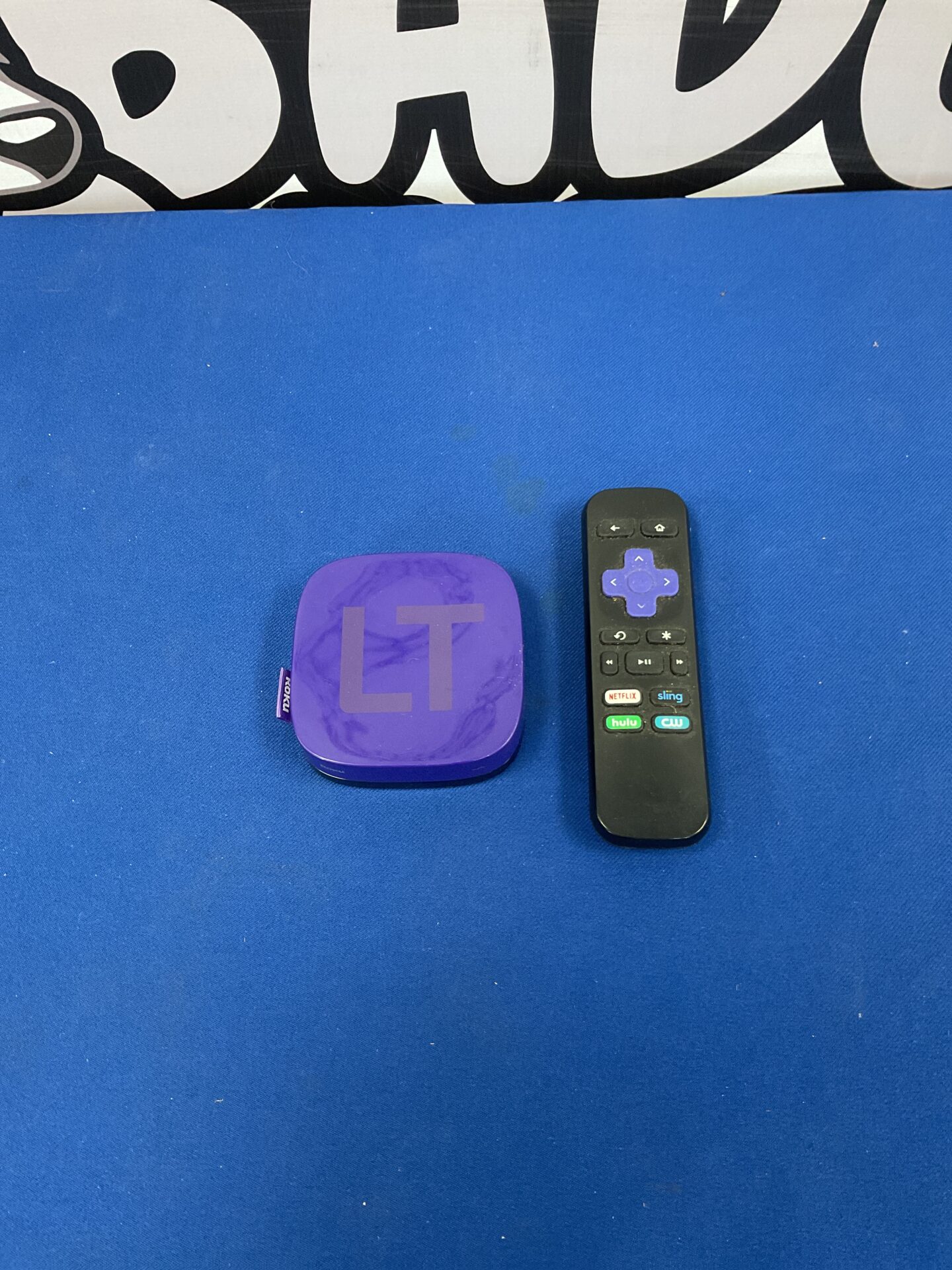 This is a Roku LT 2400X streaming media player, designed to bring a world of entertainment to your television. This model offers a simple and accessible way to stream content from various online services. The included remote allows for easy navigation and control of the streaming experience.