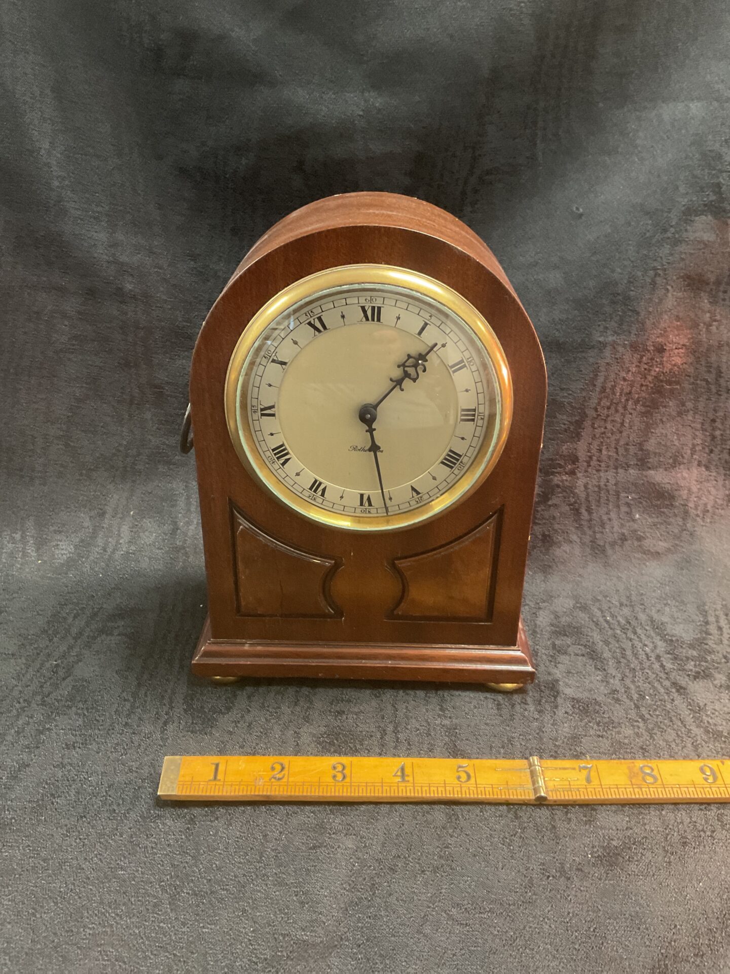 This Rotherhams mantle clock is in good working order, making it a desirable piece for collectors and enthusiasts. While showing some signs of age consistent with a vintage item, it remains a beautiful and functional example of 1970s design. Its working condition and classic style make it a great addition to any collection or a charming decorative piece for a home.