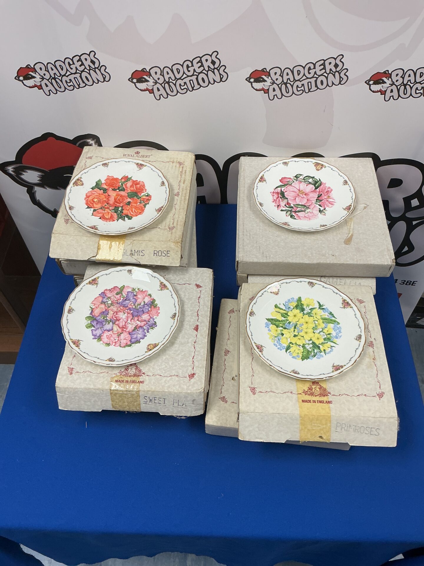 This lot comprises a collection of decorative wall plates by Royal Albert. These porcelain plates feature floral designs and are intended for display. The plates showcase the brand’s commitment to quality and aesthetic appeal, making them a desirable addition to any collection of fine china.