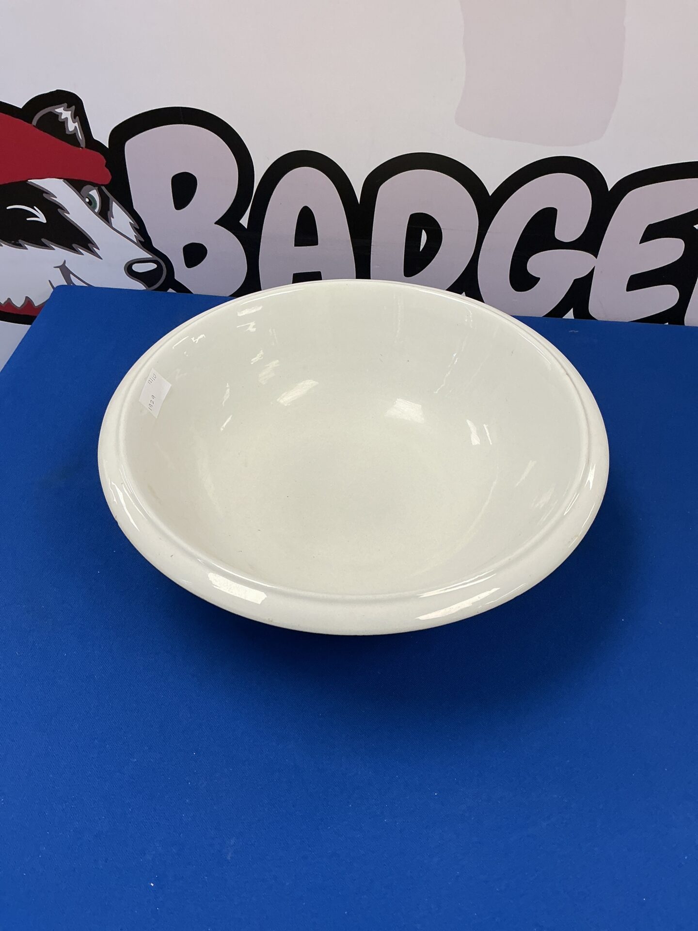 This mixing bowl is in good vintage condition, showing signs of wear consistent with age and use. It retains its original glaze and is free from major cracks or chips, though minor imperfections may be present. This bowl is highly sought after by collectors of vintage kitchenalia and those who appreciate the quality and craftsmanship of Royal Ironstone.