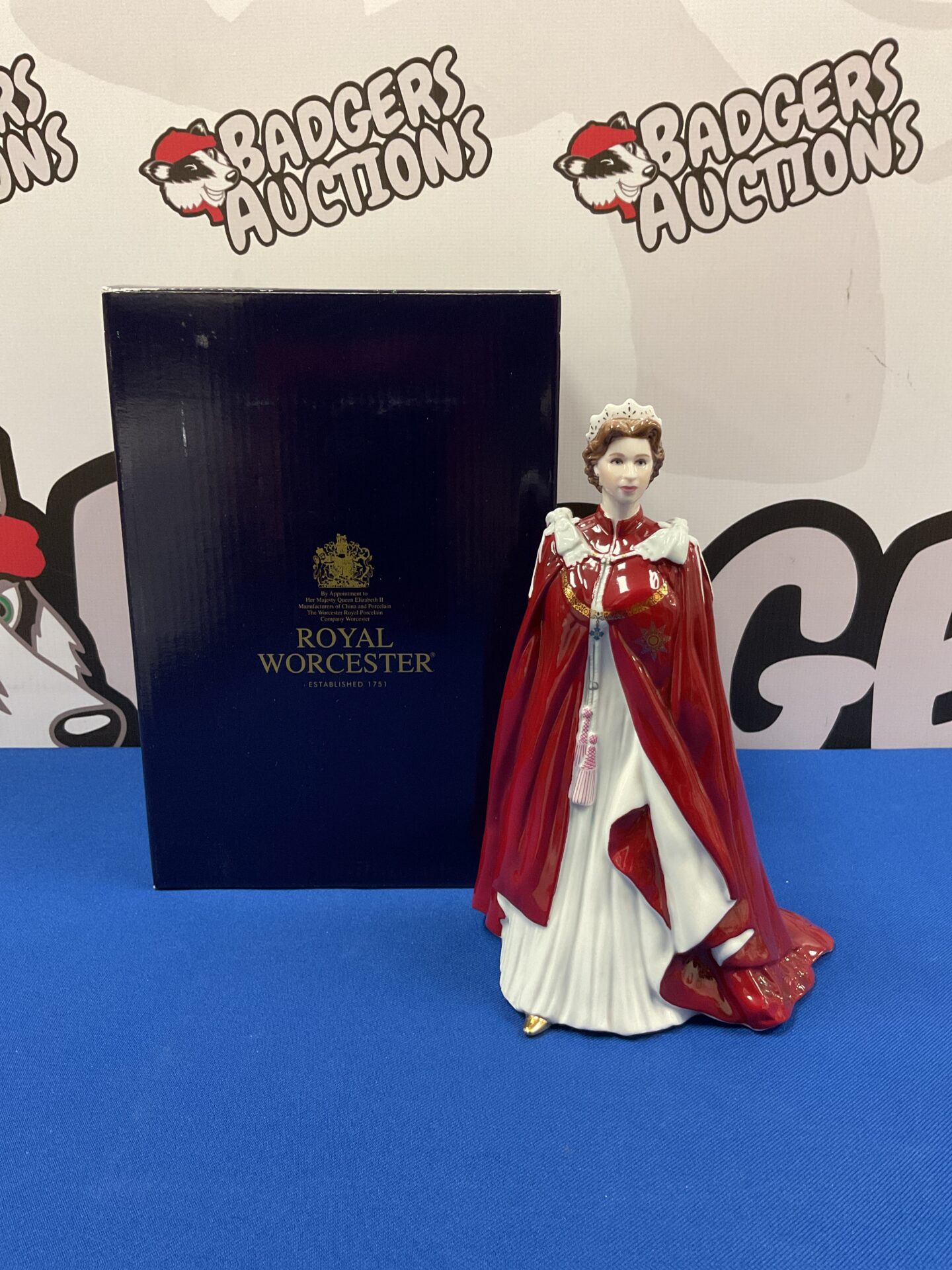 This is a fine china figurine depicting Queen Elizabeth II, produced by Royal Worcester to commemorate her 80th birthday. The figurine is meticulously crafted with attention to detail, capturing the Queen’s regal bearing and attire. The vibrant colours and delicate porcelain work showcase the high quality and artistry associated with Royal Worcester.