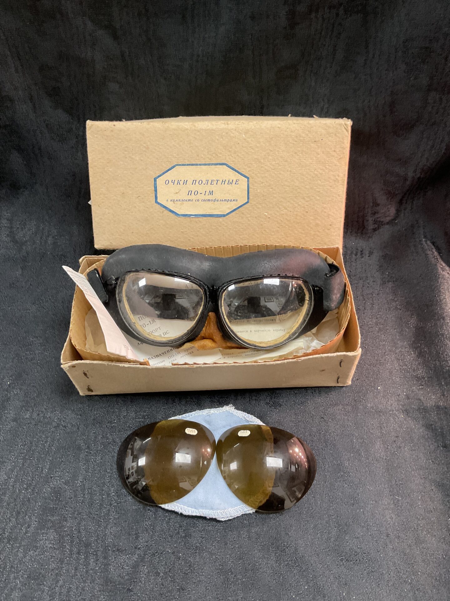 Authentic Soviet PO-1 military goggles, designed for pilots and tank crews. These goggles offer robust protection from the elements and feature a comfortable face cushion. A fascinating piece of Cold War history and a desirable collectible for military enthusiasts.