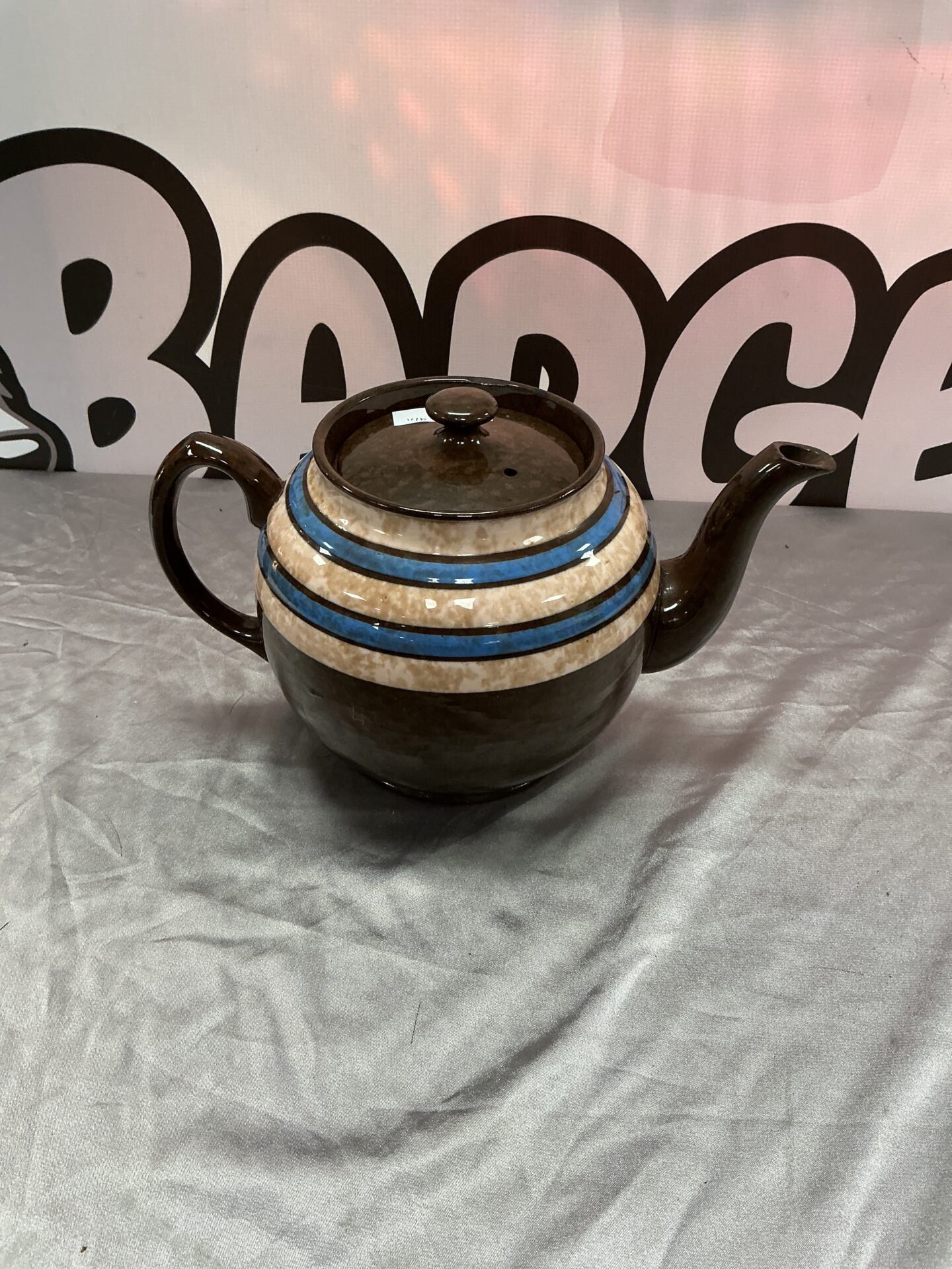 This teapot shows signs of age and use, consistent with a vintage item. There may be minor crazing to the glaze, or slight wear to the colours, which adds to its character. It is a desirable piece for collectors of Sadler Pottery or vintage kitchenalia, offering a touch of nostalgia and craftsmanship.