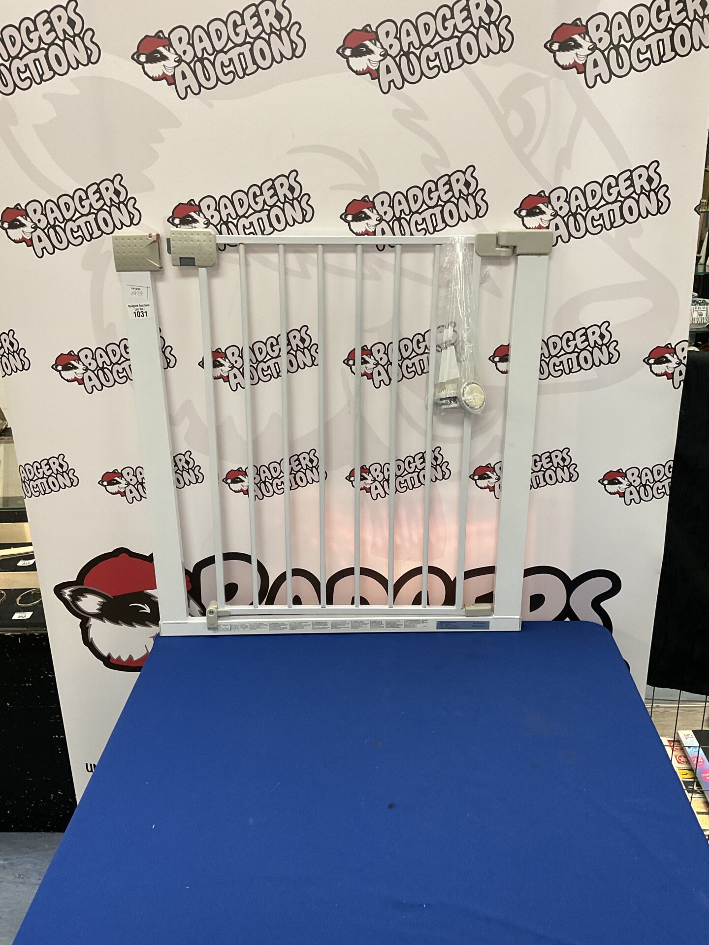 This white pressure-mounted safety gate is designed to create a secure barrier in doorways or openings. It’s a functional and simple solution for homes with children or pets. Please review the images carefully to assess its condition before purchase.
