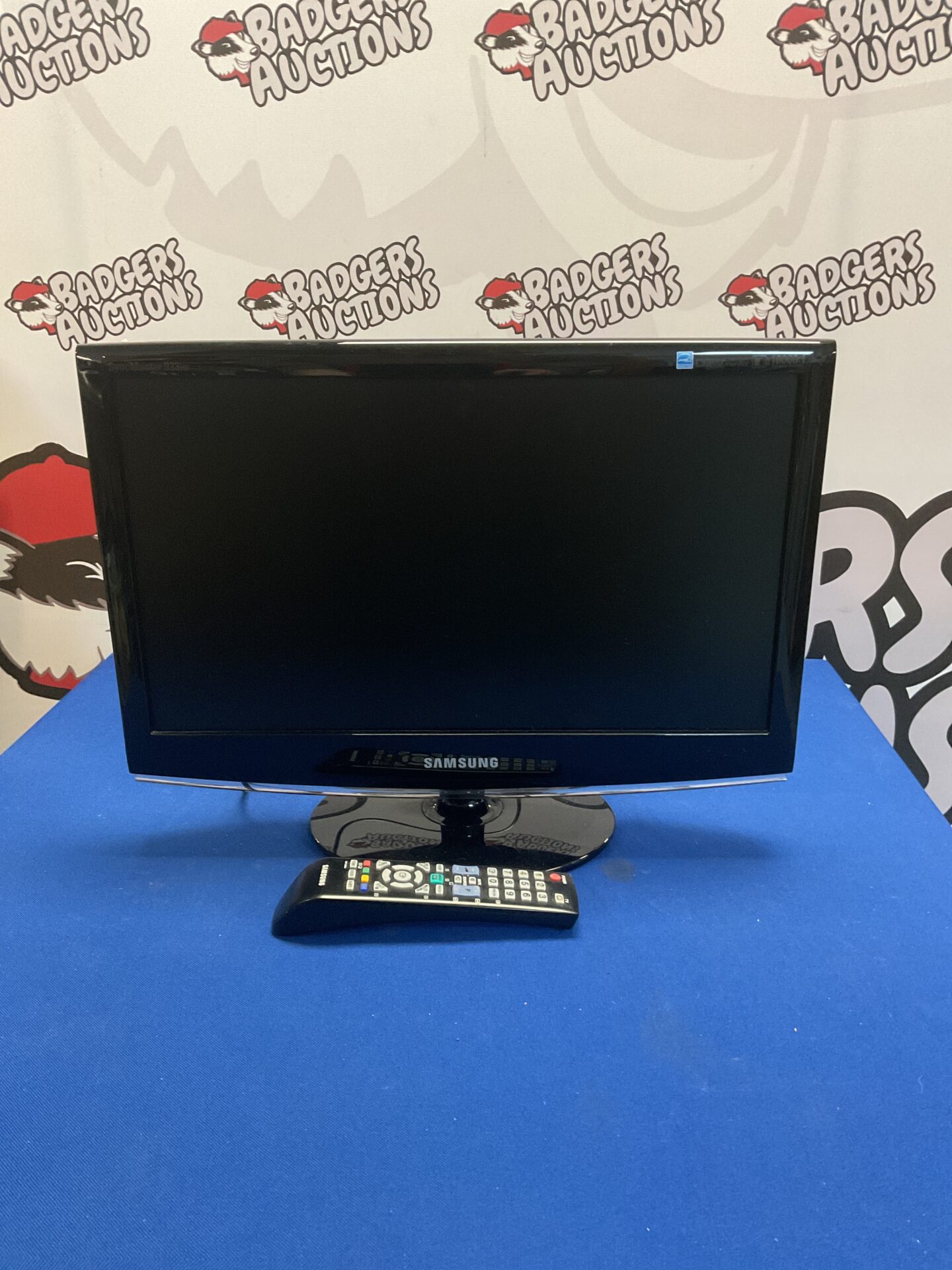This is a Samsung 19-inch LCD television, a compact and functional addition to any home entertainment setup. This television offers a classic viewing experience in a smaller form factor, ideal for bedrooms, kitchens, or as a secondary display. It comes complete with a remote control for convenient operation, allowing you to easily navigate channels and adjust settings.