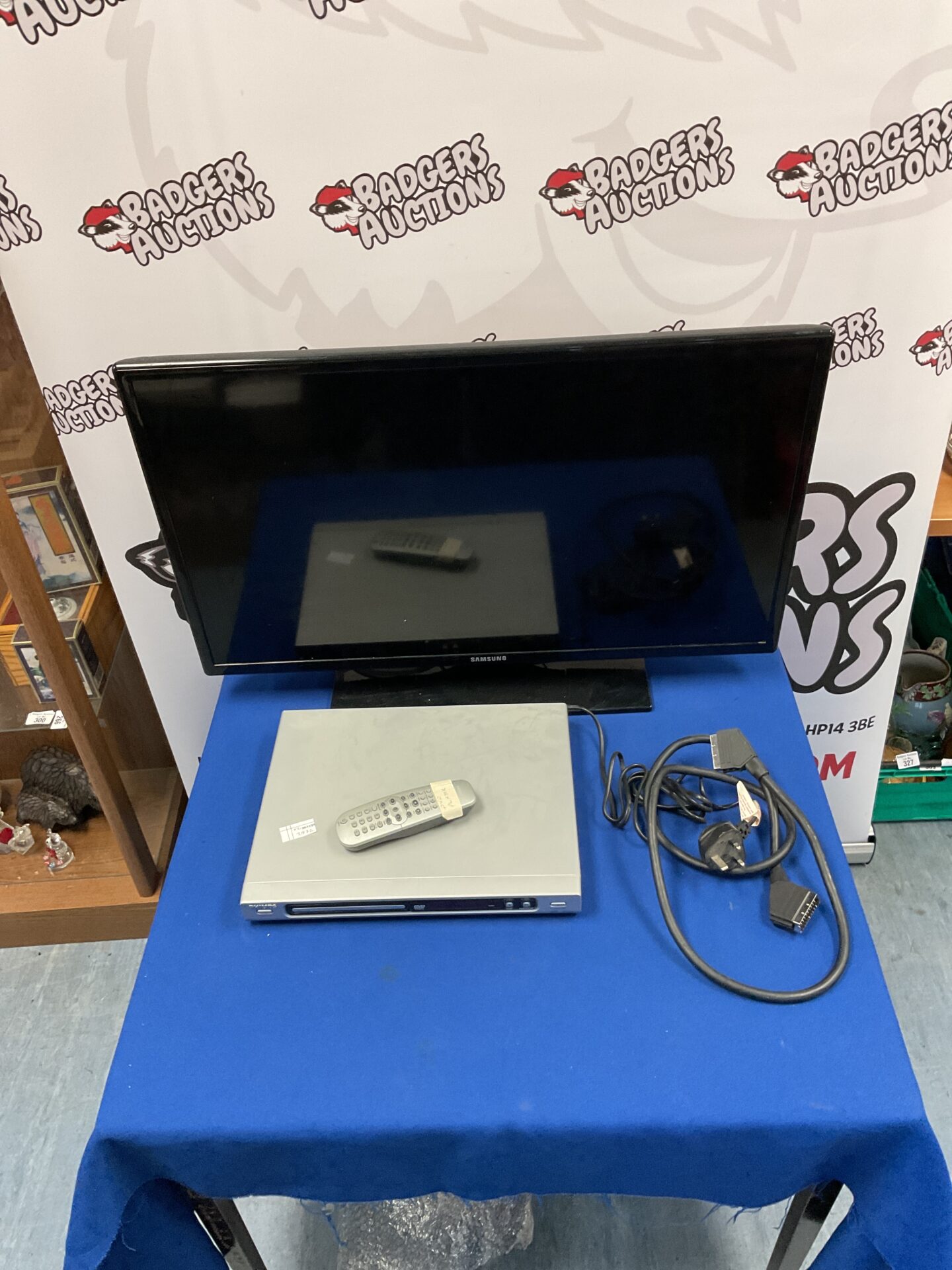 This lot features a Samsung UE32EH4000 32-inch television. It is a standard LCD television designed for home entertainment. The television is accompanied by a Philips DVD player, offering a complete viewing solution.
