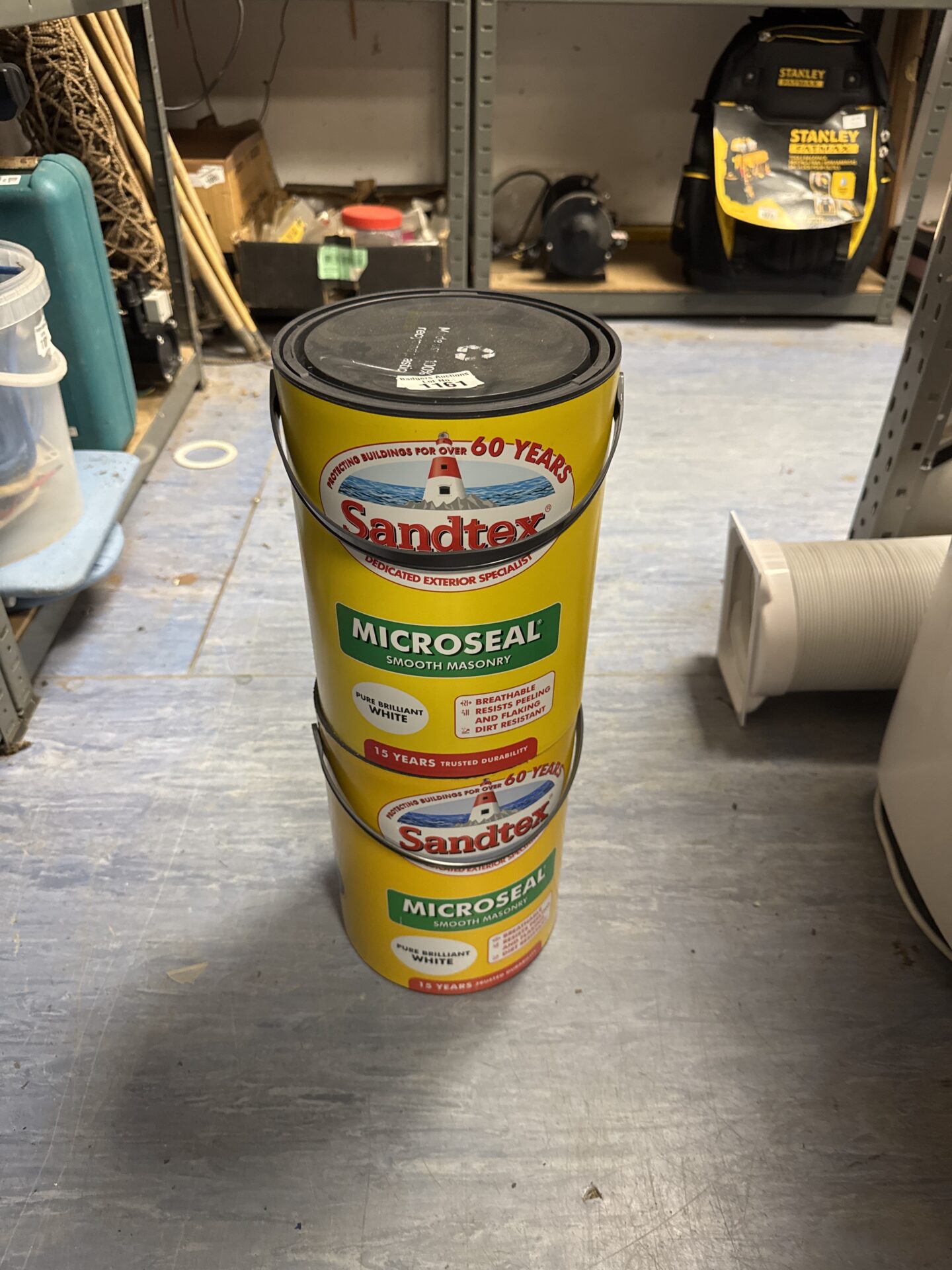 These tubs appear unopened and in good condition, suggesting the paint within is viable for use. While not explicitly antique or collectible, the Sandtex brand holds a degree of recognition amongst DIY enthusiasts and those restoring older properties. The paint’s condition and quantity make it suitable for a variety of projects, or for someone looking to maintain a consistent finish on an existing exterior.