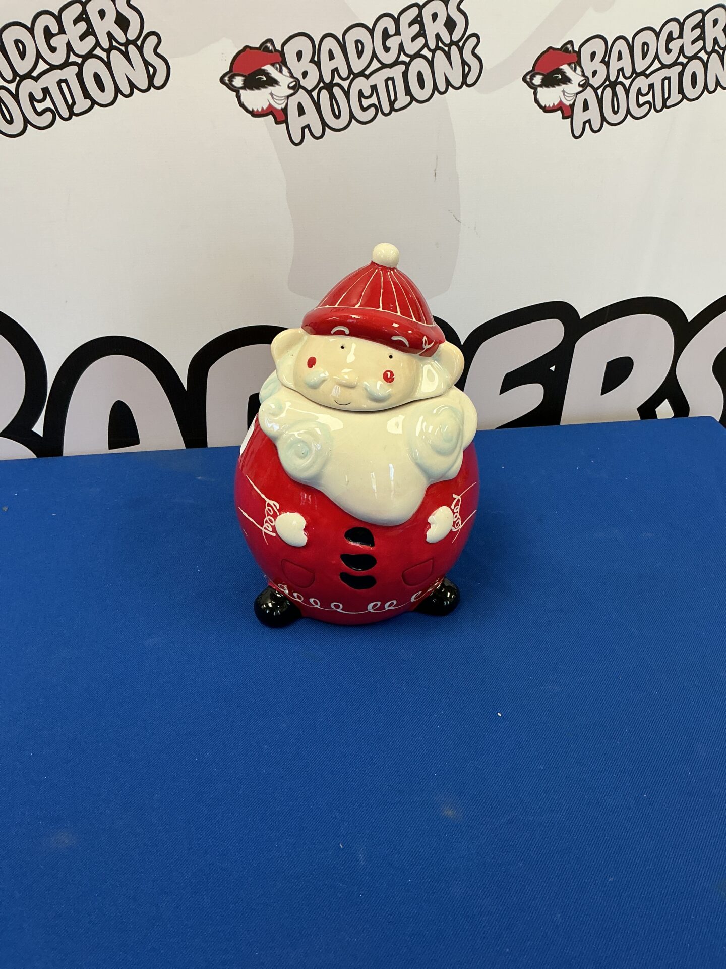 This vintage ceramic Santa cookie jar brings festive cheer to any kitchen! Featuring a classic Santa design with a glossy finish, it’s perfect for collectors and holiday enthusiasts alike. Add a touch of nostalgia to your Christmas decor with this charming collectible.
