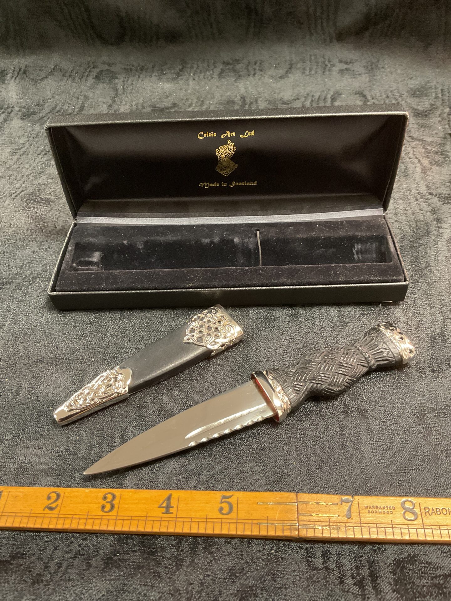This sgian dubh presents as a well-preserved example of its type. While showing signs of age and previous use, it retains its decorative appeal and structural integrity. It would be of interest to collectors of Scottish militaria, Highland dress accessories, or antique knives, and would also serve as a decorative piece or a unique gift.
