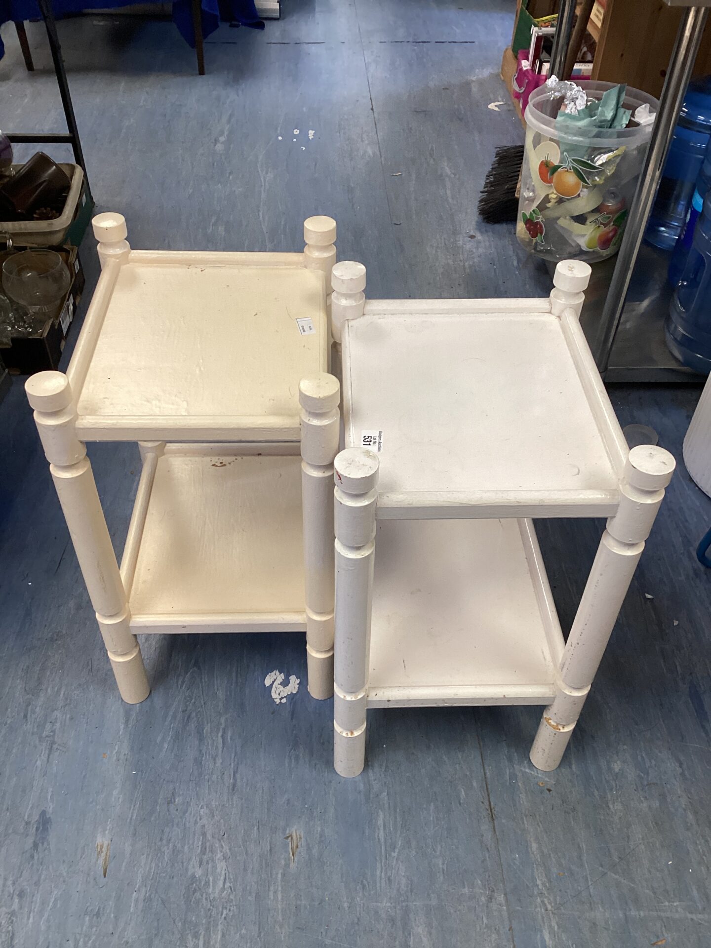 These tables show signs of wear consistent with age and use, adding to their authentic shabby chic character. While not pristine, they are structurally sound and ready to be enjoyed. Collectors of farmhouse or shabby chic decor will appreciate their vintage appeal and the opportunity to incorporate these charming pieces into their homes.