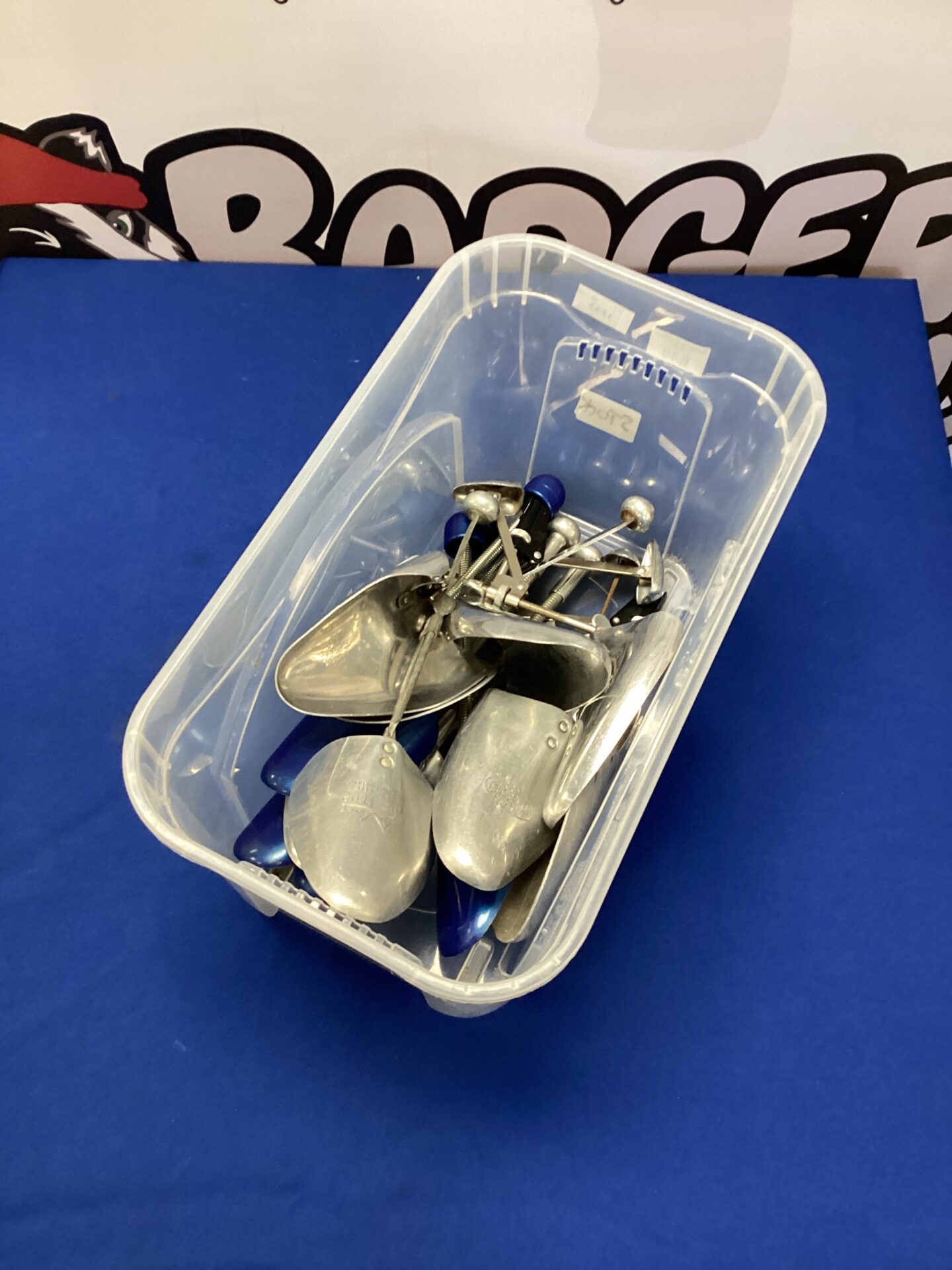 This lot features a collection of shoe stretchers, including a Vic Tree model, designed to comfortably expand footwear. Ideal for those seeking a better fit or involved in shoe repair, these stretchers offer a solution for common footwear issues. Offered as-found, these stretchers are perfect for collectors or restoration projects.