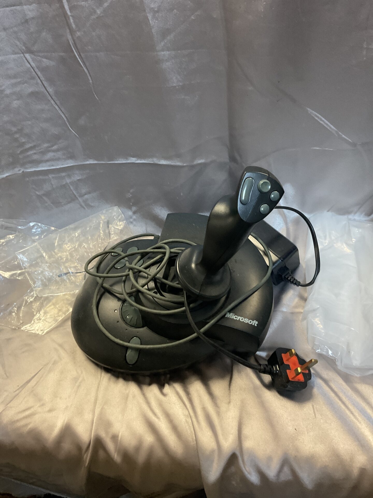 This Sidewinder Force Feedback Pro joystick presents as a vintage item, and its condition should be assessed from the images provided. It may appeal to collectors of retro gaming peripherals or those seeking a unique input device for older PC games or flight simulators. Please examine the images carefully to determine its suitability for your needs.