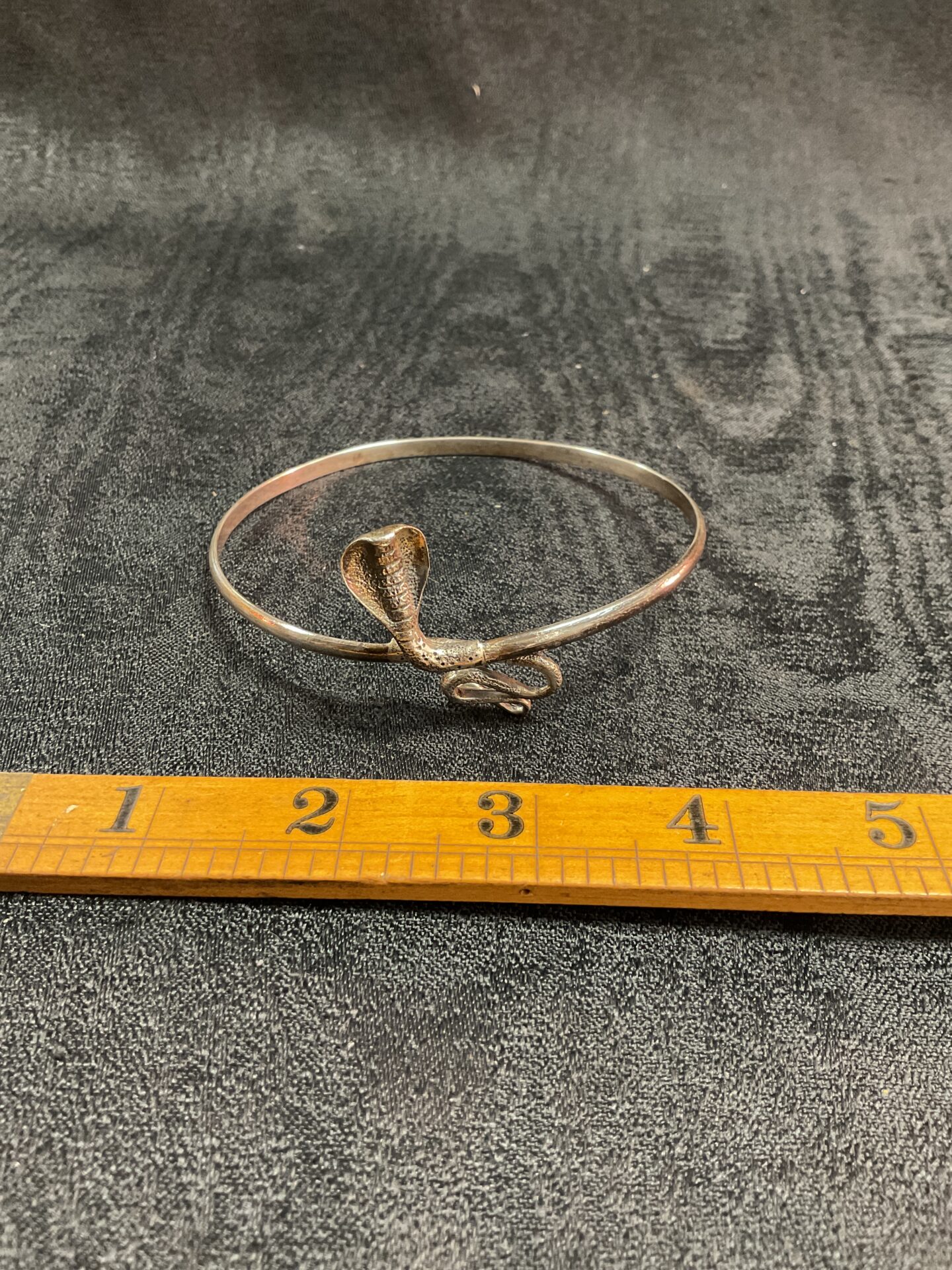 This vintage silver cobra bracelet is in good condition, ready to be enjoyed or added to a collection. The silver shows a lovely patina, adding to its character and vintage appeal. This piece would be of particular interest to collectors of snake jewellery, vintage silver, or statement armlets, offering a rare and eye-catching addition to any collection.
