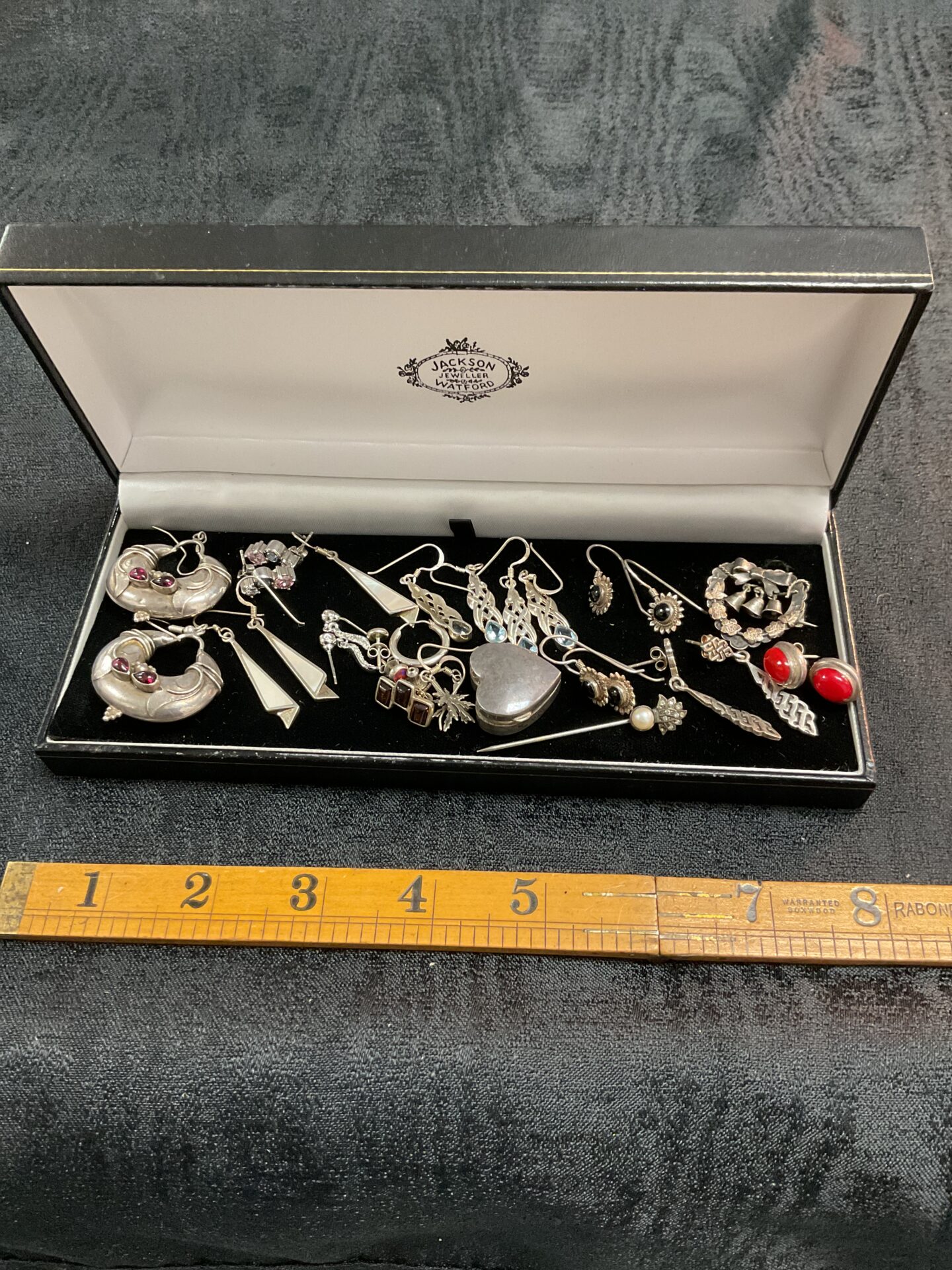 The jewellery pieces show signs of age and wear, consistent with their vintage nature. While the pieces have not been professionally cleaned or assessed, they present an opportunity for restoration or can be appreciated in their original condition. This lot would appeal to collectors of vintage silver jewellery, those interested in repurposing antique pieces, or individuals seeking unique additions to their jewellery collection.