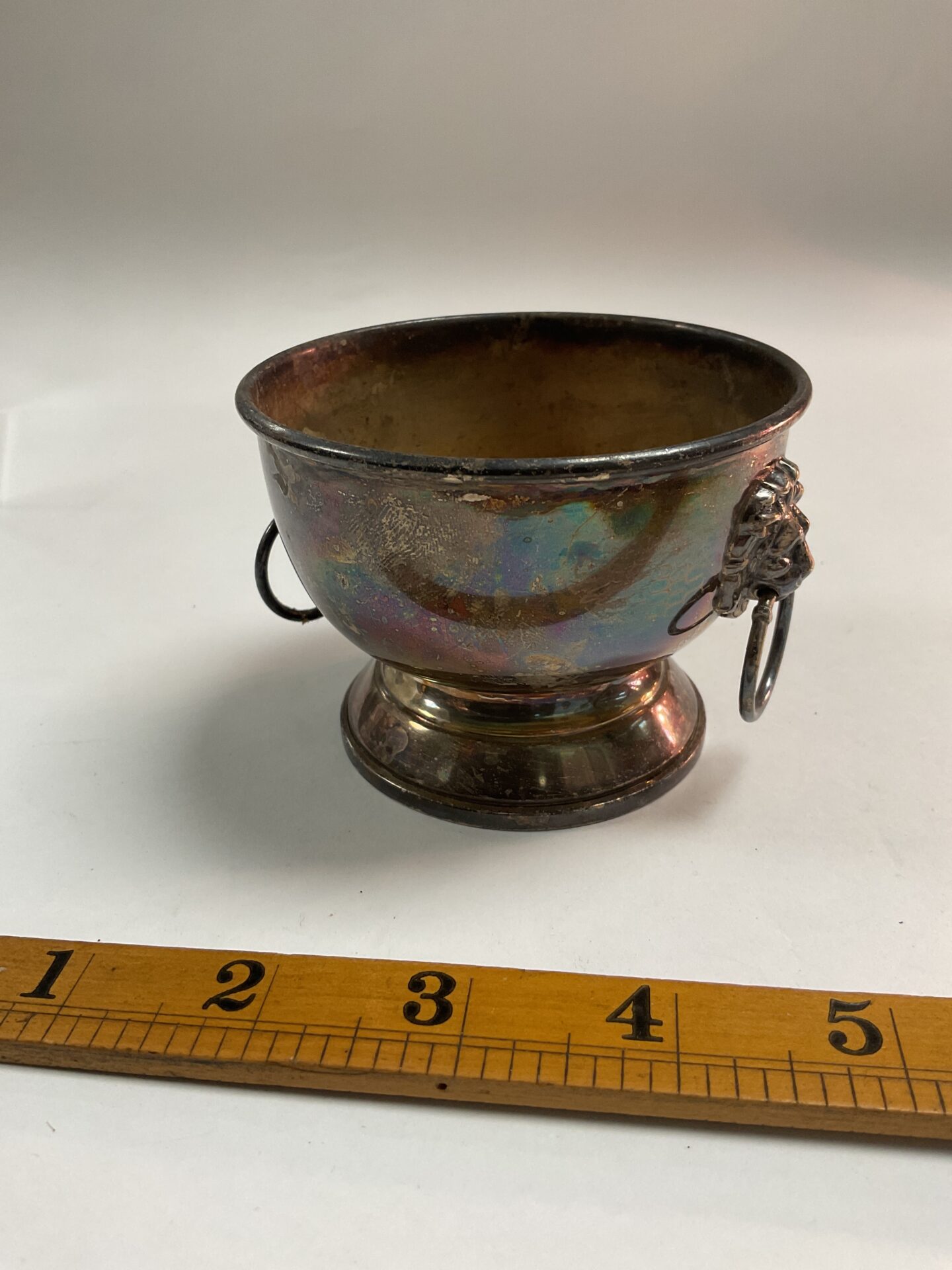 Silver Lion Head Handled Bowl