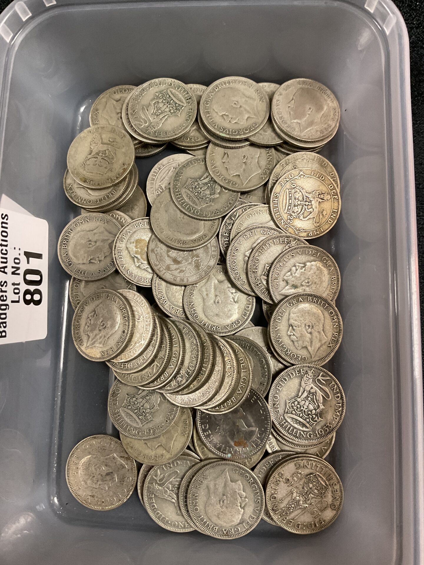The shillings display signs of wear from use, with some detailing softened by circulation. Despite this, they remain desirable to collectors of British coinage, particularly those interested in silver content and historical value. This lot presents an opportunity to acquire a substantial weight of silver in coin form, or to add to an existing collection of British shillings.
