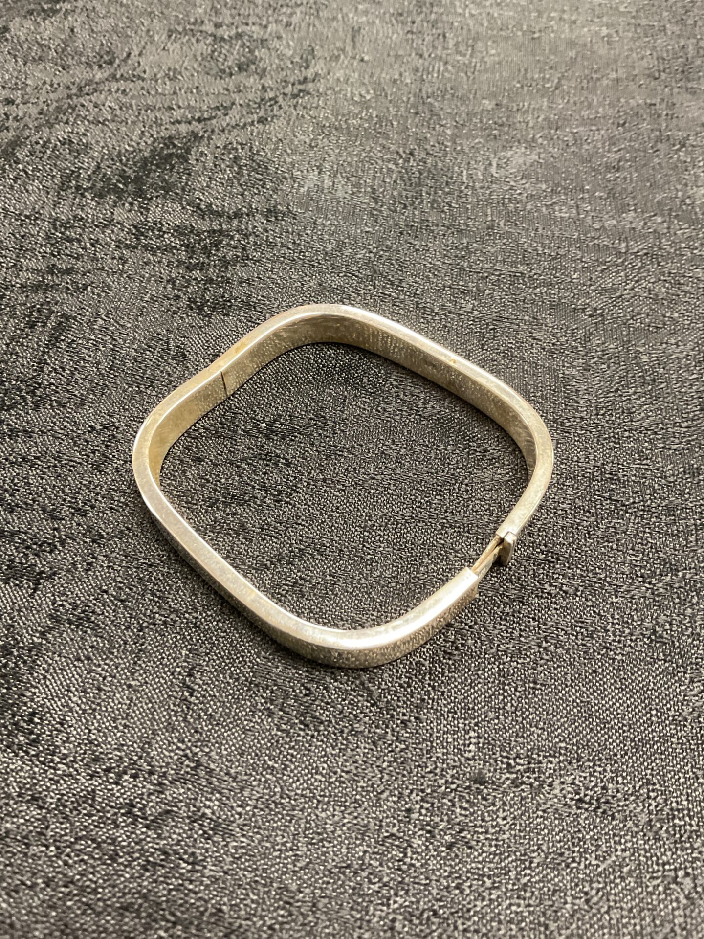 This bracelet appears to be in gently used condition, with minor surface wear consistent with age and use. The hinge functions as expected. This piece would appeal to collectors of silver jewellery or those seeking a stylish, contemporary accessory. The simple, geometric design makes it a timeless addition to any jewellery collection.