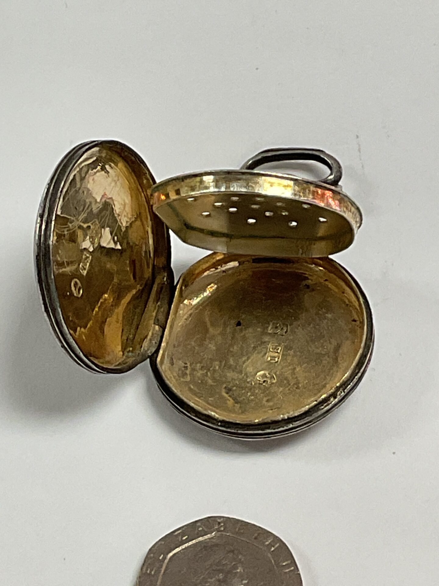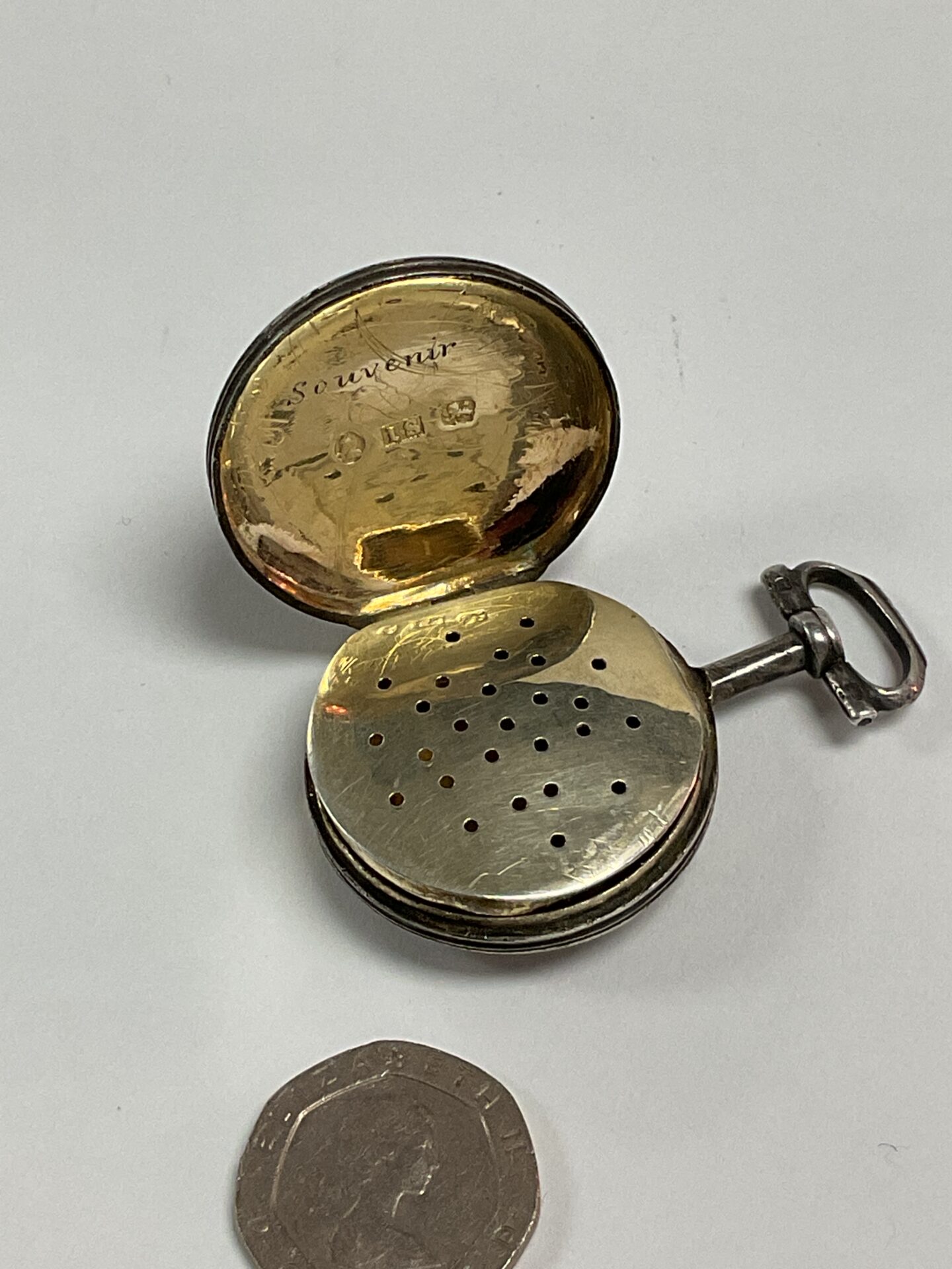 This silver vinaigrette fob shows signs consistent with age and use, with some minor surface wear and patina. The grille is present and intact, though the original cotton wool pad is absent. Despite this, it remains a desirable piece for collectors of antique silver, vinaigrettes, or Victorian personal accessories. Its compact size and attractive design make it a unique and interesting addition to any collection.