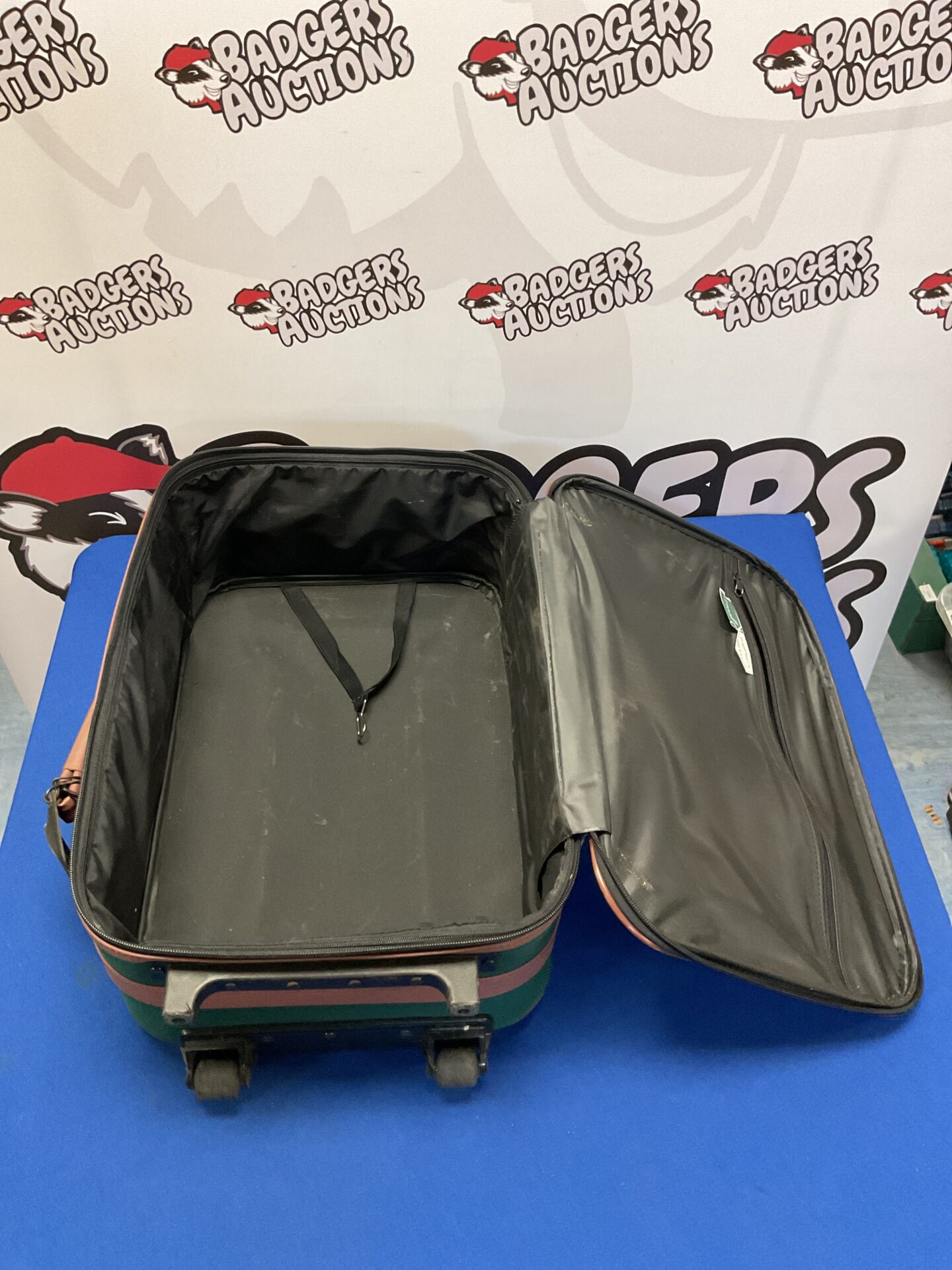 This suitcase shows signs of previous use and may exhibit wear and tear consistent with travel. It is presented as a collectible or for repurposing, and its functionality is not guaranteed. Collectors may appreciate this vintage piece, or it could be a unique addition to a themed display or prop collection.