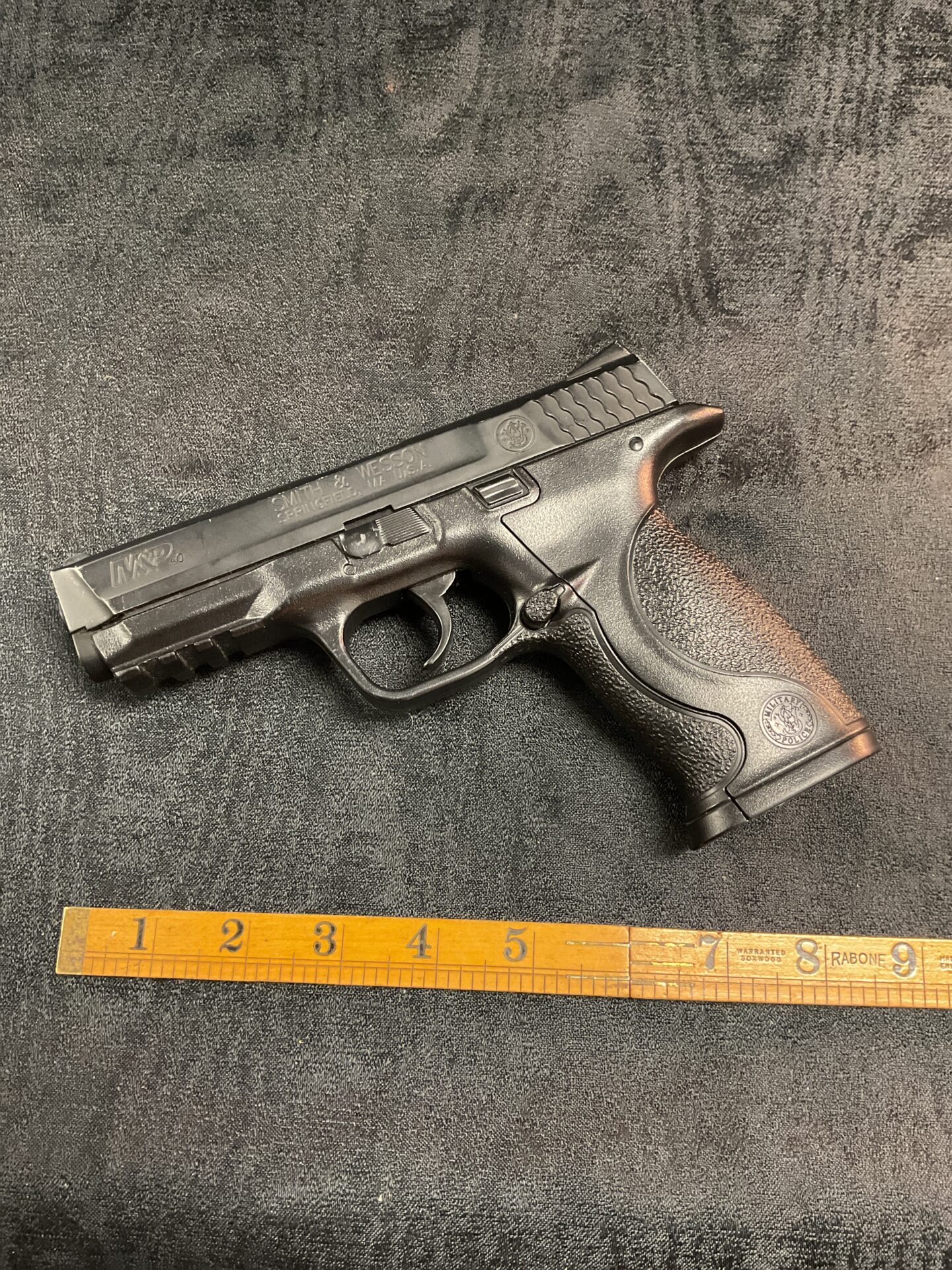 This Smith & Wesson Model 23 CO2 air pistol appears to be in good condition, showing typical signs of use. It’s a desirable item for airgun enthusiasts and collectors due to its realistic design and brand recognition. The pistol is a fun and affordable way to enjoy the shooting sports or add to a collection of airgun replicas.