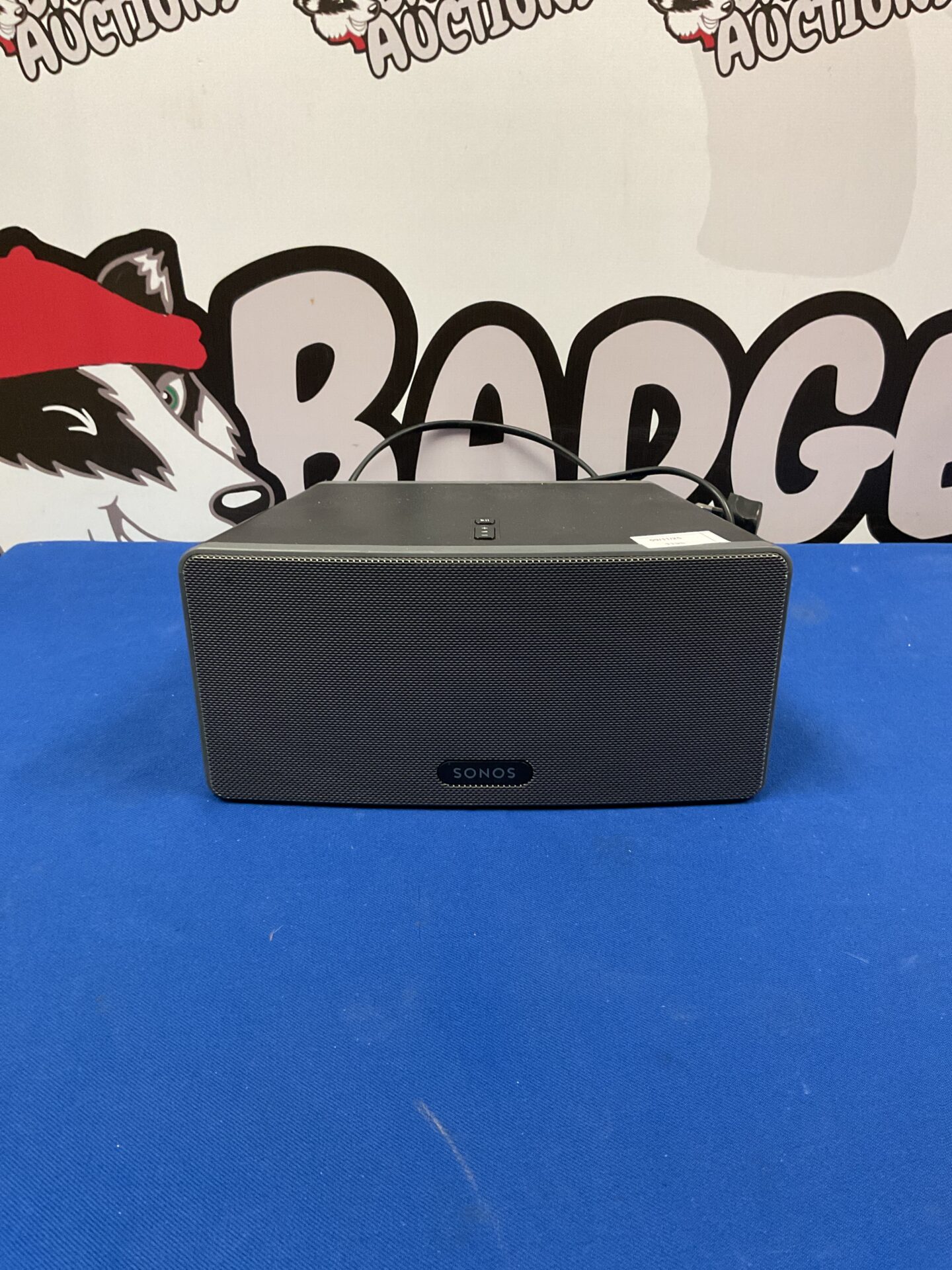 This Sonos Play 3 exhibits signs consistent with use and age. It may show cosmetic wear, such as minor scratches or blemishes, but remains a functional example of Sonos’ popular speaker line. This unit may appeal to collectors of vintage audio equipment or those seeking to expand an existing Sonos system without the cost of a new unit.