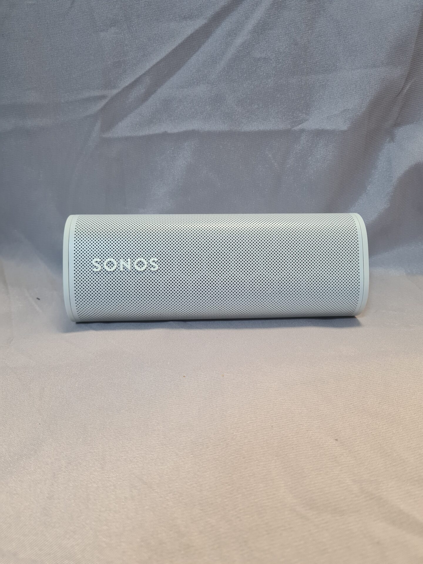 This Sonos Roam speaker presents as a pre-owned item. Its condition should be assessed by the buyer through provided images. This portable speaker is of interest to collectors of smart home technology and Sonos enthusiasts, as well as those seeking a high-quality, compact audio solution for on-the-go listening.