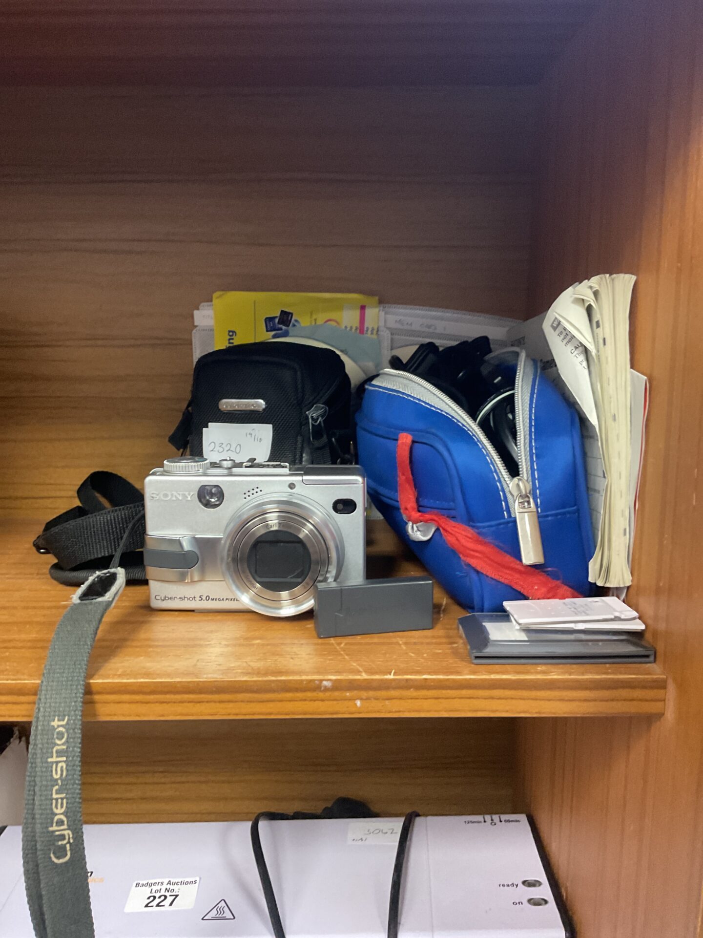 222 Sony Cyber-shot 5.0 Megapixels Digital Camera With Memory Cards And Discs, Case, And Cables