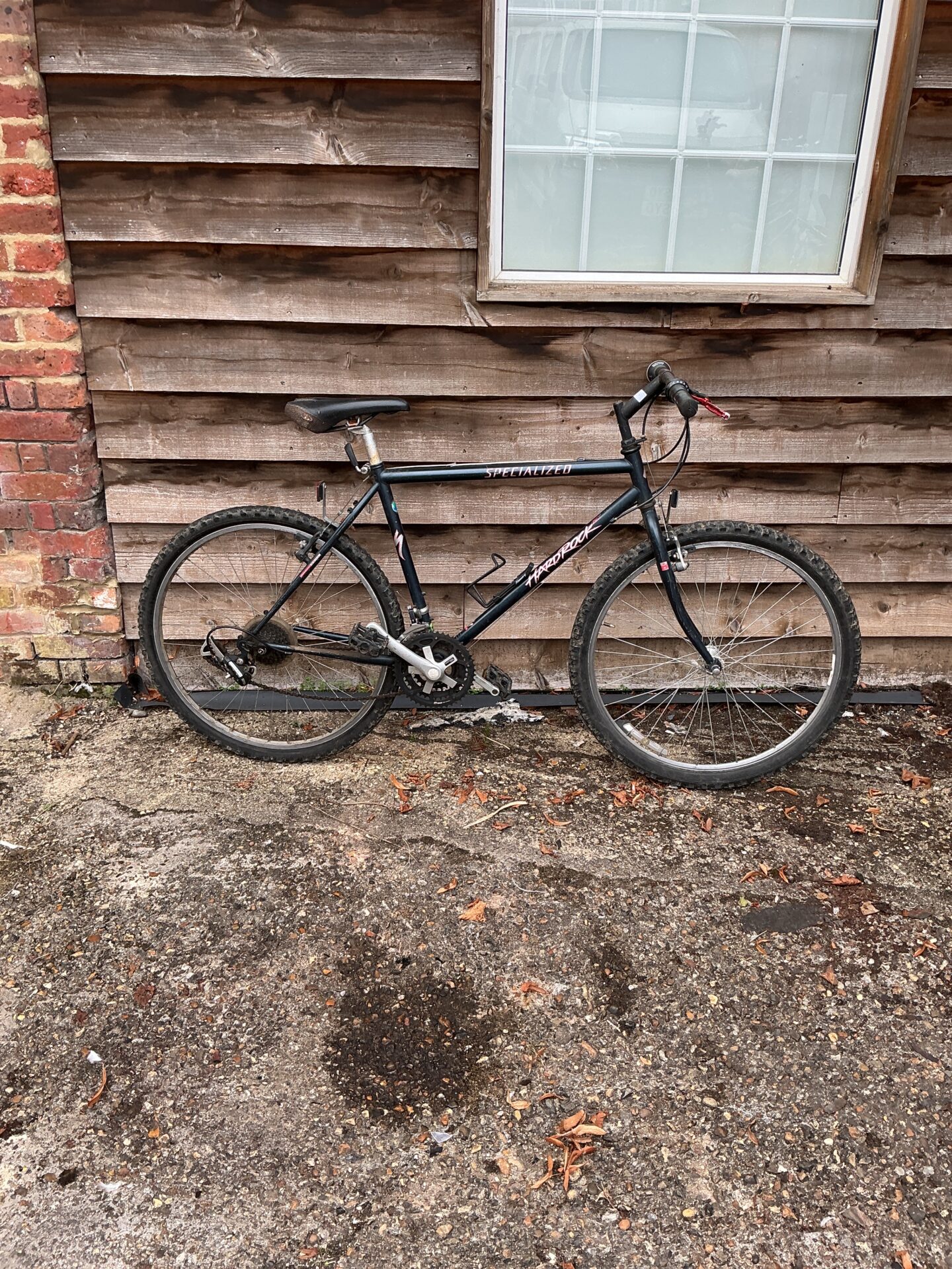This vintage Specialized Rockhopper mountain bike is a classic 90s model perfect for a restoration project. Featuring a sturdy steel frame and traditional mountain bike geometry, it offers a comfortable ride and a great opportunity for customisation. Ideal for collectors or those seeking an affordable, reliable ride after some TLC.
